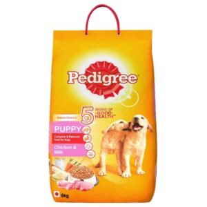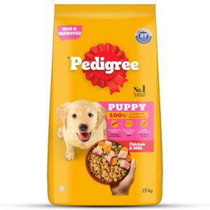 Pedigree provides 100% complete and balanced dog food for puppies to support their well-being. Pedigree Puppy Dry Dog Food, Chicken & Milk, is a wholesome meal containing 37 essential nutrients. The goodness of quality ingredients, including chicken and milk, blends into a tasty and nutritious diet for your little furry friend. This puppy dog food is developed with experts. When fed as recommended (refer to the back of the pack for feeding guidelines), this dry dog food supports strong muscles & bones (High Quality Protein & Calcium), brain & vision development (DHA) and healthy natural defense (Vitamin E & Selenium). At Pedigree, recipes are developed based on research from the Waltham Centre for Pet Nutrition. Every product from Pedigree meets the requirements laid down by NRC 2006 of the U.S. National Academy of Science. Give your furry companion healthy and lip-smacking mealtimes with Pedigree.