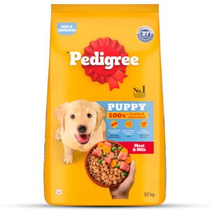 Pedigree provides 100% complete and balanced dog food for puppies to support their well-being. Pedigree Puppy Dry Dog Food, Meat & Milk, is a wholesome meal containing 37 essential nutrients. The goodness of quality ingredients, including meat and milk, blends into a tasty and nutritious diet for your little furry friend. This puppy dog food is developed with experts. When fed as recommended (refer to the back of the pack for feeding guidelines), this dry dog food supports strong muscles & bones (High Quality Protein & Calcium), brain & vision development (DHA) and healthy natural defense (Vitamin E & Selenium). At Pedigree, recipes are developed based on research from the Waltham Centre for Pet Nutrition. Every product from Pedigree meets the requirements laid down by NRC 2006 of the U.S. National Academy of Science. Give your furry companion healthy and lip-smacking mealtimes with Pedigree.