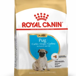 Suitable for dogs over 10 months old, ROYAL CANIN® Pug Adult is specially formulated with all the unique nutritional needs of your adult Pug in mind.Because the Pug’s skin is folded, and the folds can become warm and retain unwanted humidity, it’s important that your dog’s diet helps to support the health of its skin. ROYAL CANIN® Pug Adult’s exclusive formula helps to support the skin’s “barrier” role, as well as overall skin health.ROYAL CANIN® Pug Adult also contains a balance of nutrients that help to support your Pug’s muscle tone.Pugs have very specific features: a large head and a body with short, square muscles. Its jaws and very thick lips can make it difficult for it to pick up its food