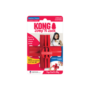The KONG Jump’N Jack has a fun bounce and unique design that’s great for chew sessions. The ridges reduce plaque while providing a gentle cleaning and conditioning of teeth and gums. Fill the ridges with Treats or Peanut Butter to extend playtime and satisfy chewing instincts.