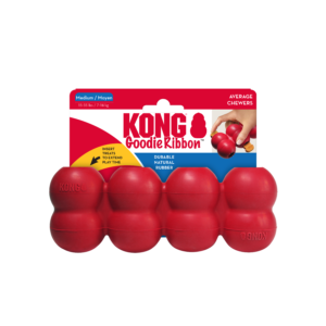 tuff KONG Goodie Ribbon’s four spaces with treats and the Goodie Gripper™ ridges inside make getting the nibbles out a mentally challenging puzzle for dogs. Durable KONG Classic Rubber satisfies natural chewing instincts while providing a durable solution that keeps dogs engaged.