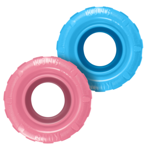 The new KONG Puppy Tire is an extension of the most popular KONG Classic Puppy line. Building on the success of the popular KONG Tires for adult dogs, this toy uses KONG’s exclusive puppy rubber formula specifically designed to ease teething gums. The stuffable inner track creates a mental challenge for puppies while teaching correct chewing habits. Freeze for a greater challenge.