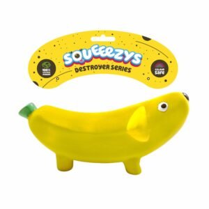 Hey there, future best buddy! I’m BANANA DOG! I’m not just any dog toy – I’m part of the Squeeezys Collection, a fun, homegrown dogs toys brand that keeps you entertained while giving your hooman peace of mind. I’m designed especially for extra small to medium-sized pups, with a durable yet gentle build that can handle all your playful bites and tugs. We’re going to have tons of fun together, making memories with each game of fetch, tug, and chew!