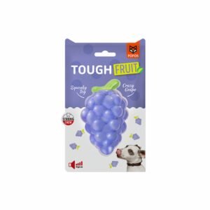 Introducing Barkbutler x Fofos Tough-Fruit Loud Grape, the ideal near indestructible chew toy for your medium to large dogs (10-30kgs) like Beagles, Indies, and similar breeds. This durable, fun, squeaky toy is designed with a robust TPR body, making it perfect for strong chewers, while its super loud squeaker adds excitement to your pet’s playtime. The unique bumpy texture massages teeth and gums, promoting dental health during chewing sessions. Although not recommended for extremely aggressive chewers, this chewy, squeezy, and squishy toy is perfect for engaging in interactive play & exercise with your furry friend.