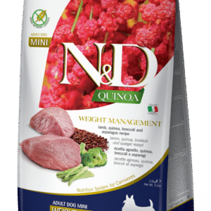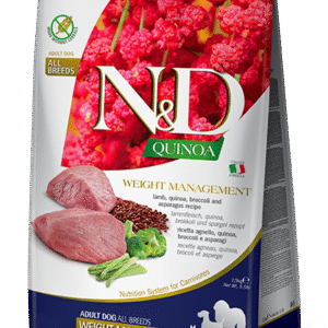 N&D Quinoa Weight Management is a complete dietetic food for dogs, suggested for the reduction of excessive body weight.