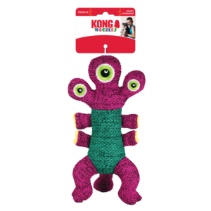 KONG Woozles’ unique texture and shape are ideal for natural shaking instincts. These space age characters are sure to delight dogs and the reinforced material is ideal for long-lasting indoor play sessions. These adorable alien buddies have multiple squeakers to keep dogs engaged for long bouts of healthy exercise.
