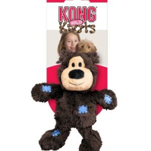 KONG Wild Knots are soft and cuddly on the outside while durable and strong on the inside. Wild Knots bears are sure to be a hit with dogs and their pet parents. Dogs love the knotted skeleton, and the reinforced plush body provides extra durability. KONG Wild Knots have less stuffing for less mess and they squeak to entice play.