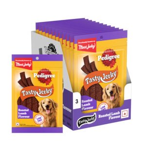 Bring joy to your dog’s day and get closer to them with healthy and tasty Pedigree® treats. Pedigree® Tasty Jerky™ Roasted Lamb Flavour dog treat is a great combination of good taste and soft chewy texture, making this a flavoursome treat to specially share every day. It is a jerky-style treat made with chicken liver cut into long, thin strips and dried, that helps you bond with your dog. Made with quality ingredients, it is a source of minerals & antioxidant (Vitamin E as an antioxidant). Pedigree® Tasty Jerky™ contains Omega 6 and is a high-protein* healthy treat (*20% more protein as compared to Pedigree® Ranchos Super Bones) with low fat. It also contains calcium to support healthy bones. This dog treat which is suitable for dogs over 3 months, perfectly complements your dog’s complete and balanced meals. Feed as per the feeding guide mentioned on the back of the pack, depending on your dog’s breed size. As you open the pack, the irresistible aroma will have your dog at your feet in no time. Share moments of happiness and joy with your dog with the delicious flavour treats from Pedigree®.