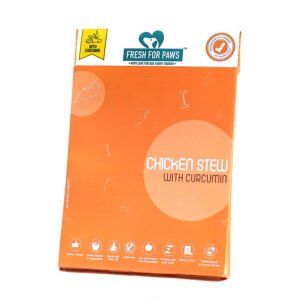 Delicious chicken curcumin stew with real chunky chicken and the goodness of veggies, Fresh for Paws packs a complete balanced diet for all your furry babies needs. Delicious home cooked meals made with the same ingredients you cook with. Wet food is better appreciated by dogs who do not drink water regularly. No preservatives or other toxic additives. Human grade food made by humans in a human food facility ensures that the treatment, to the pet and its food, is fair.