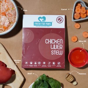 Delicious chicken liver stew with real chunky chicken and the goodness of veggies, Fresh for Paws packs a complete balanced diet for all your furry babies needs. Delicious home cooked meals made with the same ingredients you cook with. Wet food is better appreciated by dogs who do not drink water regularly. No preservatives or other toxic additives. Human grade food made by humans in a human food facility ensures that the treatment, to the pet and its food, is fair.