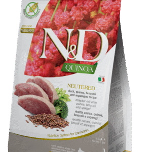 Unlock the power of N&D Quinoa Neutered, the ultimate formula for cats. Scientifically formulated for cat that have been spayed or neutered and helps contrast the tendency to overweight, while ensuring optimal nutrition and satisfaction.