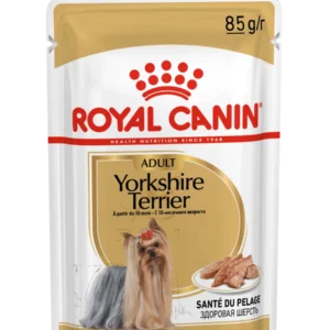 Suitable for Yorkshire Terriers over 10 months old, ROYAL CANIN® Yorkshire Terrier in Loaf is specially formulated with all the nutritional needs of your adult dog in mind.ROYAL CANIN® Yorkshire Terrier in Loaf contributes to maintaining the skin and long coat health of Yorkshire Terriers with an exclusive blend of optimal nutrients – to help keep their coat glossy, shiny and silky.This food also helps support digestive health with a precise level of nutrition that has been formulated specifically for the Yorkshire Terrier breed.ROYAL CANIN® Yorkshire Terrier in Loaf is crafted to provide an adapted texture in order to increase levels of palatability to help stimulate your dog’s appetite. The scent and softness of this tasty loaf should help satisfy the appetite of even the fussiest Yorkshire Terrier!To cater to each dog’s individual preferences, ROYAL CANIN® Yorkshire Terrier in Loaf is also available as dry food, with crunchy and tasty kibble.If you’re considering mixed feeding, simply follow our feeding guidelines to ensure your dog gets an accurate amount of both wet and dry food for optimal benefit.