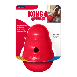 The KONG Wobbler™ is an action-packed toy that is a mentally stimulating food dispenser. The unpredictable movement stimulates natural instincts keeping even the most seasoned users challenged. Trying to get your dog to lose a few unwanted pounds? It is a great way to keep dogs moving while making them work for their food. Unscrews for easy filling and cleaning. Use the large Wobbler™ for medium to large-sized dogs