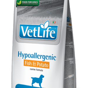 Reduction of the occurrence of adverse reactions to foods. Farmina Vet Life Hypoallergenic Fish & Potato is a complete dietetic food for dogs formulated for the reduction of alimentary intolerance. It is also recommended as coadjuvant in the support of trophic function of the skin and of its appendages: eye, ear, anal sacks.