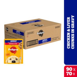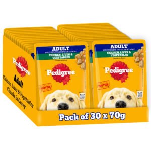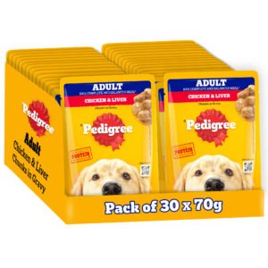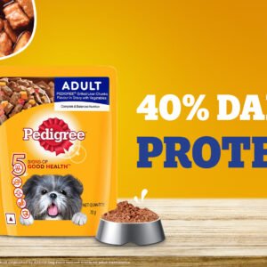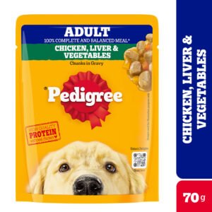 Make every mealtime a fusion of taste and nutrition for your Dog with Pedigree. Made with real meat and high quality protein, Pedigree Adult Wet Dog Food, Chicken & Liver Chunks in Gravy, ensures that you are providing a meal that keeps your dog happy and supports their well-being. This exciting meal is packed with gravylicious chicken & liver chunks that your furry companion will love. Packed with essential nutrients, it is a 100% complete and balanced meal that provides your dog with all the nutrients to stay healthy and strong. Protein & Calcium support healthy muscles & bones while Dietary Fibre supports a healthy digestive system. Omega 6 and Zinc help keep your dog’s skin and coat healthy. The water content in the meal ensures your dog is well-hydrated. At Pedigree, recipes are developed based on research from the Waltham Centre for Pet Nutrition. Every product from Pedigree meets the requirements laid down by NRC 2006 of the U.S. National Academy of Science. Give your dog the goodness of Pedigree to satisfy their cravings and support their good health.