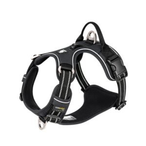 The straps are equipped with 3M reflective stitching, enhancing visibility for late-evening walks, making the harness visible up to 210 meters in darkness for added safety. It’s constructed with sandwich-padded soft mesh and durable Cordura fabric for toughness and comfort.