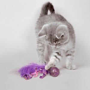 Even the most indifferent kitty will be dazzled by the Kong Bat-a-Bout Flicker Flurry toy! Pounce-worthy feathers surround a glittery ball that flashes when it moves, creating a fun multi-sensory experience. It’s great during the day and perfect for encouraging independent play at night!
