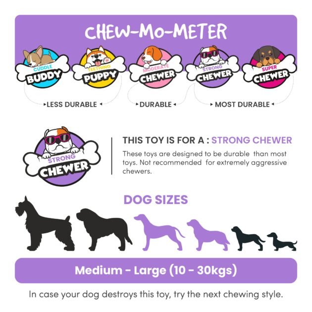 Our dog playing toys are suitable for small to large dogs between 5-30kgs, this large dog toys is a versatile option for all dog breeds and sizes. Whether you’re looking for toys for German Shepherds, Golden Retrievers, Beagles, Shih Tzus, or even Pomeranians, Aly The Gator is a fantastic choice even if you are looking for dog toys for medium dogs.