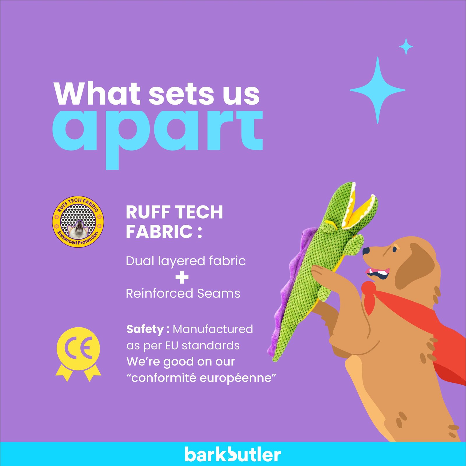 Introducing Aly The Gator, the perfect plush toys for dog brought to you by Barkbutler! Designed to be the ultimate toy for dog for medium dogs and the ideal puppy toy for small dogs, Aly The Gator is much more than dog toys for small dogs. This large, 47 cm green alligator is made from soft fabric but is tough, featuring durable stitching and an added layer of fabric to increase its durability.