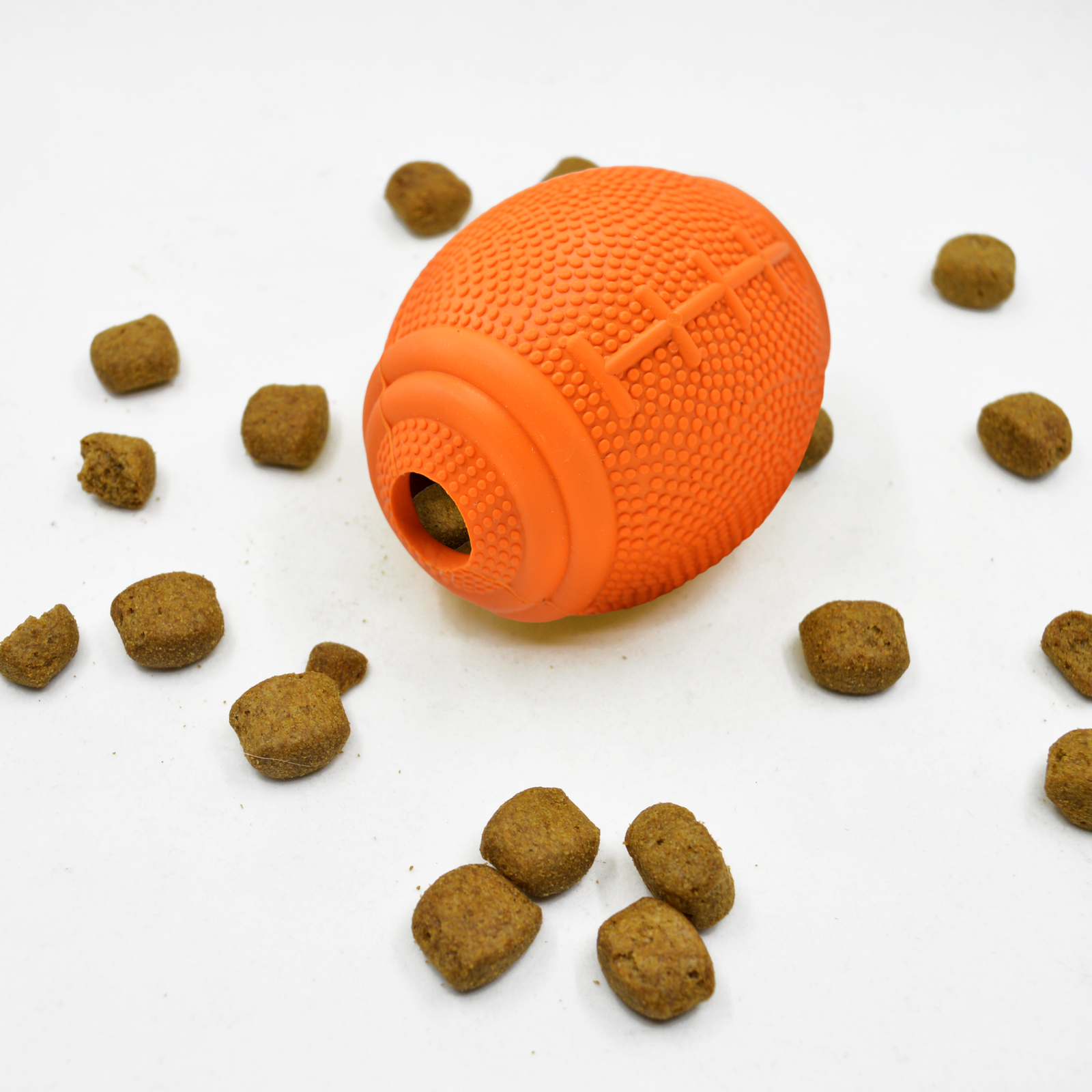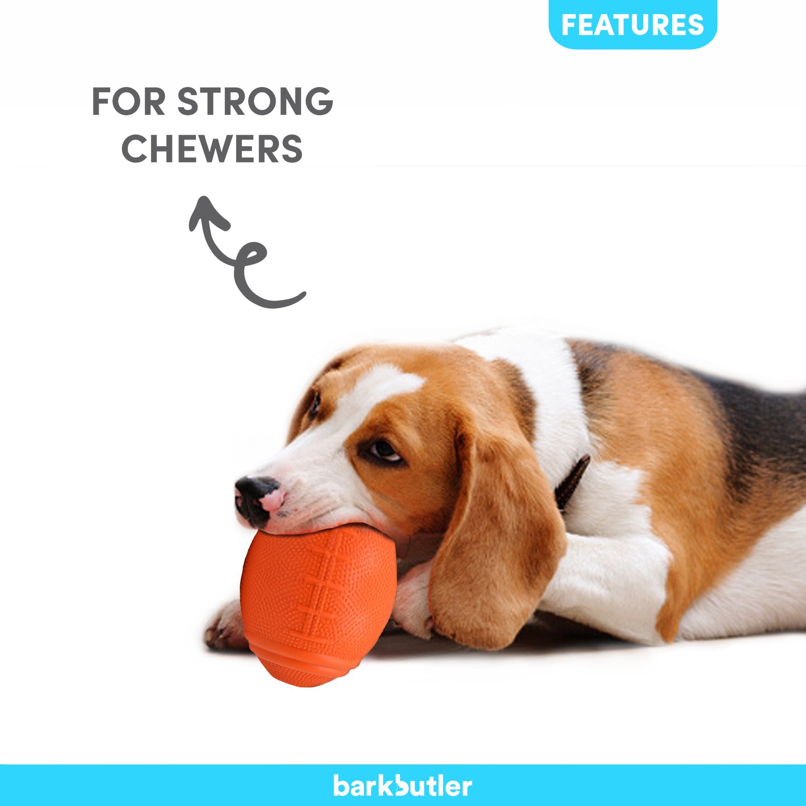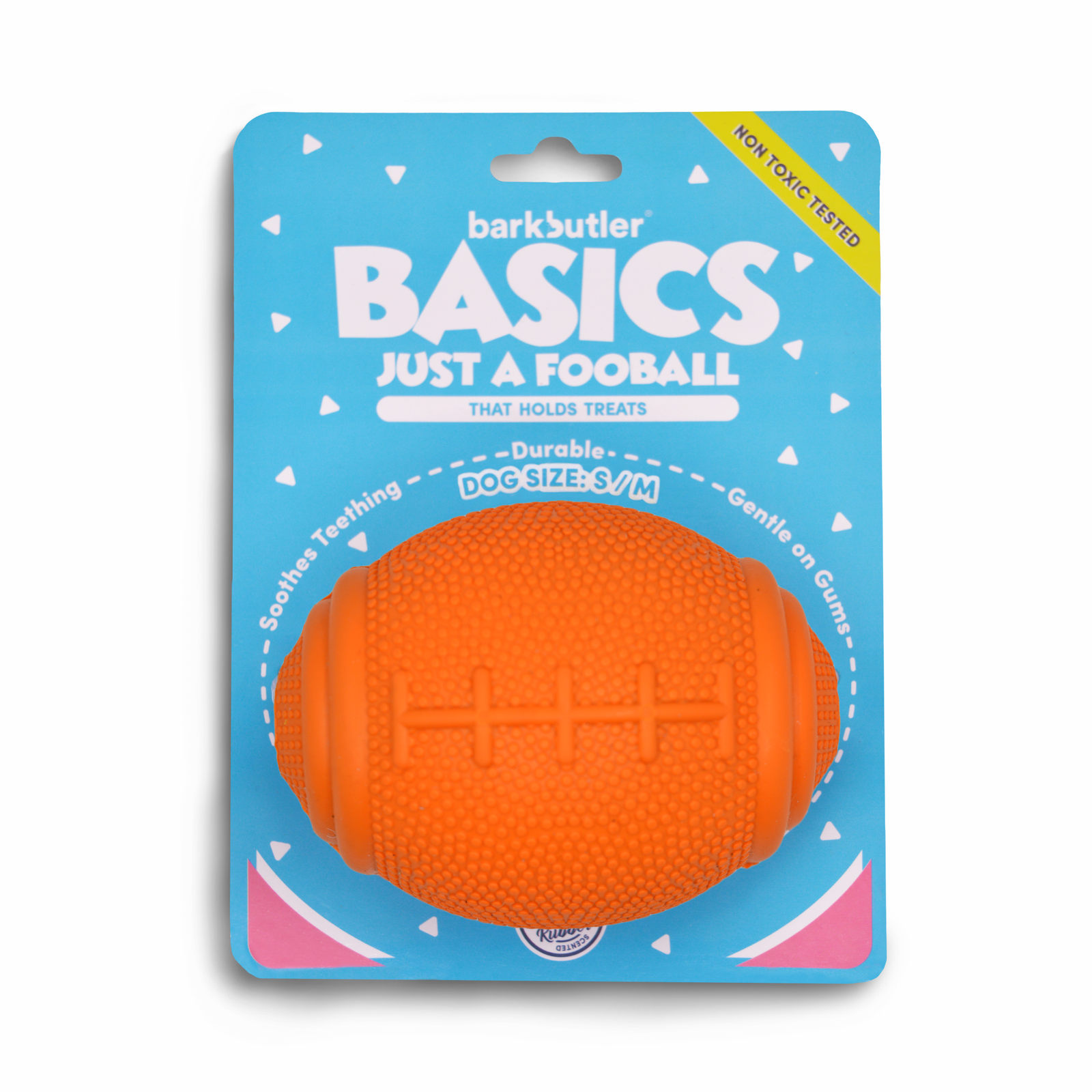 Barkbutler Basics – Just a fooball is a durable dog chew toy made from soft 100% natural rubber. It has an erratic bounce that makes playtime engaging for your puppy. Ball toys are perfect for a fun game of fetch, chase, and catch. This interactive toy is vanilla scented & treat-dispensing which means you can stuff food or treats inside the toy, keeping your dog busy and get the right amount of exercise. Fetching toys such as these are ideal for small-medium dogs (5-20kg) of breeds such as Shih Tzu, Beagle, Pug, spitz, dachshund, and Pom. This toy is strong but not indestructible and is best suited for pet dogs that have aggressive chewing and playing style. Not recommended for extremely aggressive chewers.