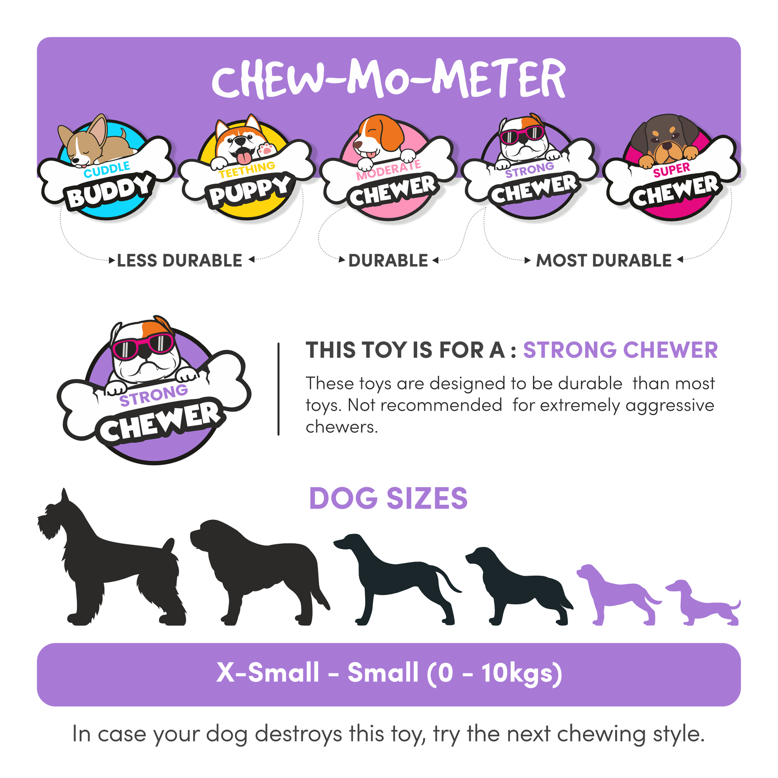 Barkbutler Just a Snitch is a durable dog chew toy made from 100% natural rubber. It has an erratic bounce that makes playtime engaging for your puppy. unidirectional ball toys are perfect for a fun game of fetch, chase, and catch. This interactive toy is mint scented. Fetching toys such as these are ideal for X-Small-Small dogs (0-10kg) of breeds such as Lab, Golden Retriever, German Shepherd, Husky, etc,. This toy is strong but not indestructible and is best suited for pet dogs that have aggressive chewing and fetch playing styles. Not recommended for extremely aggressive chewers.