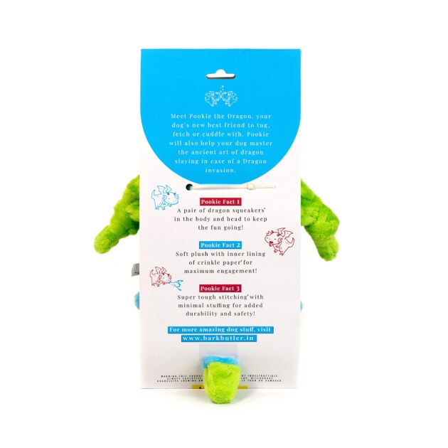 Let Pookie help your puppy get ready to deal in case of a dragon invasion, unfortunately, he doesn’t respond to the command ‘Dracarys’ but he will command your dog’s attention! Just like all our plushes, this super-soft bumpy plush comes with krinkle paper, two squeakers and also two sizes. Playing Styles: Cuddle, Tug, Indoor Fetch, Moderate Chewing. Pookie small works best with Small (5-10kgs) & Medium (10-20kgs) sized dogs.