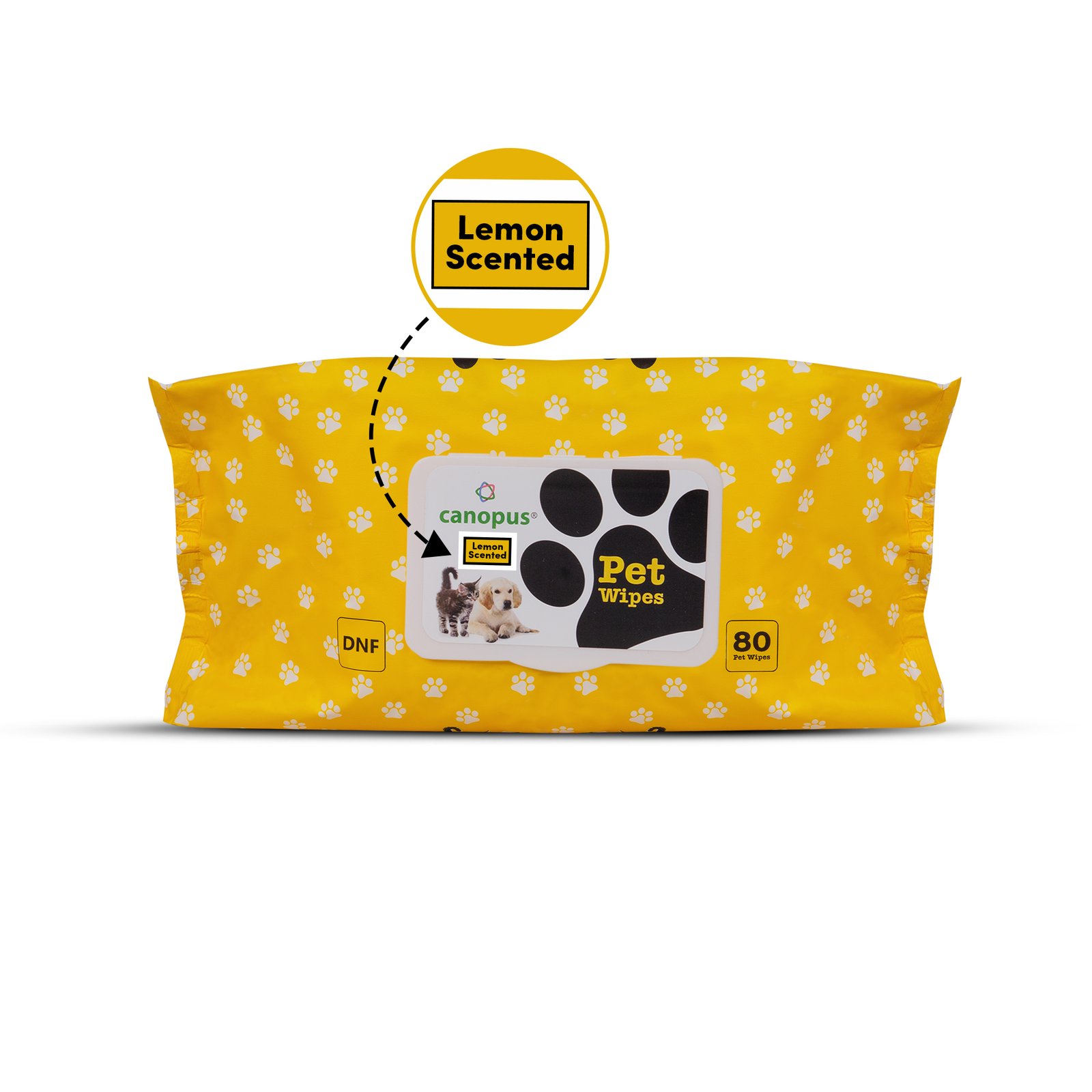 These pet wipes are appropriate for all pets of all sizes. Each Pet wipe measures at 19 cm x 12 cm. It is used as a disinfectant to keep paws, body & face clean, no water or rinsing required. Manufactured in an FDA approved facility, Alcohol-free & Lemon scented, making it safe by keeping harsh & unnecessary chemicals away for your pet.