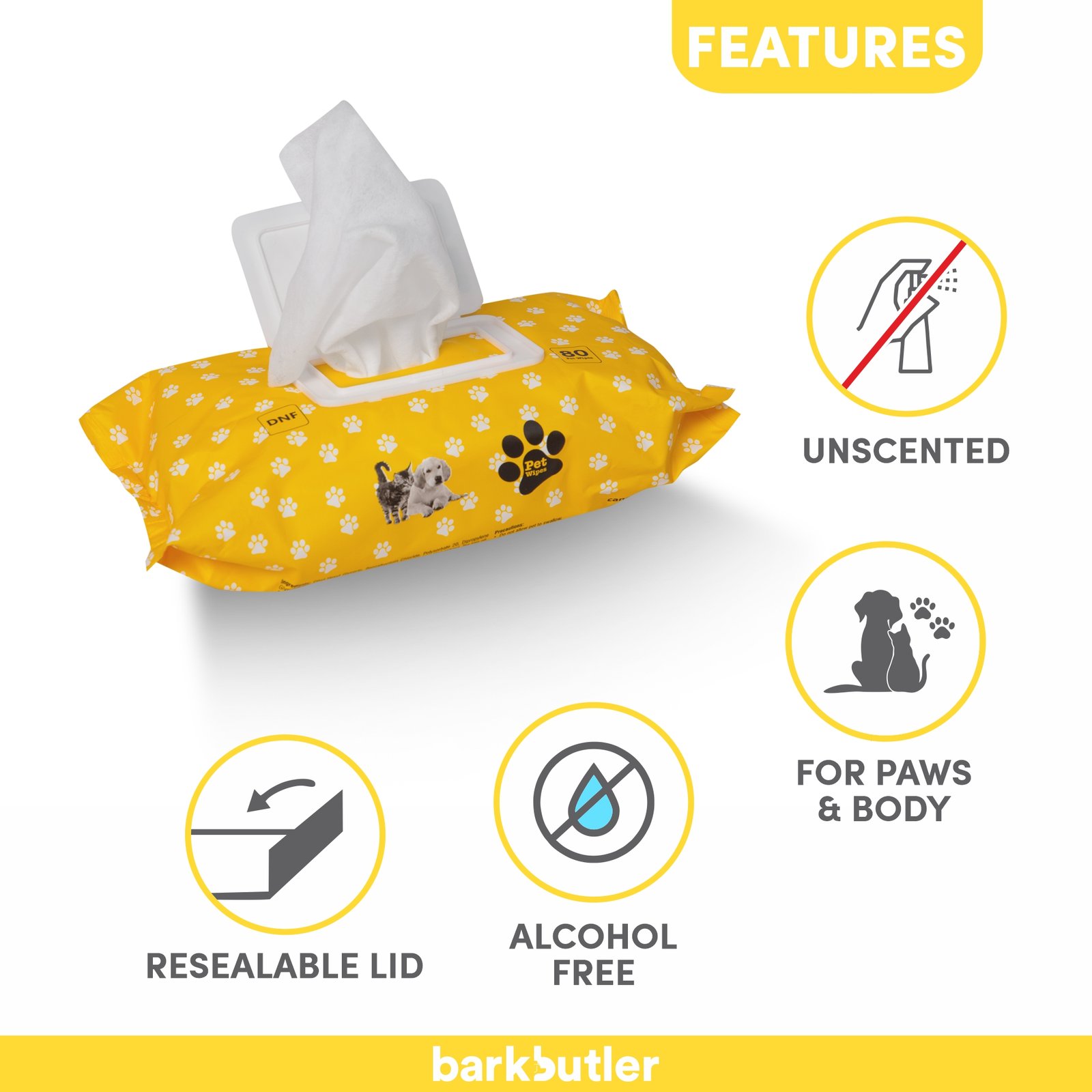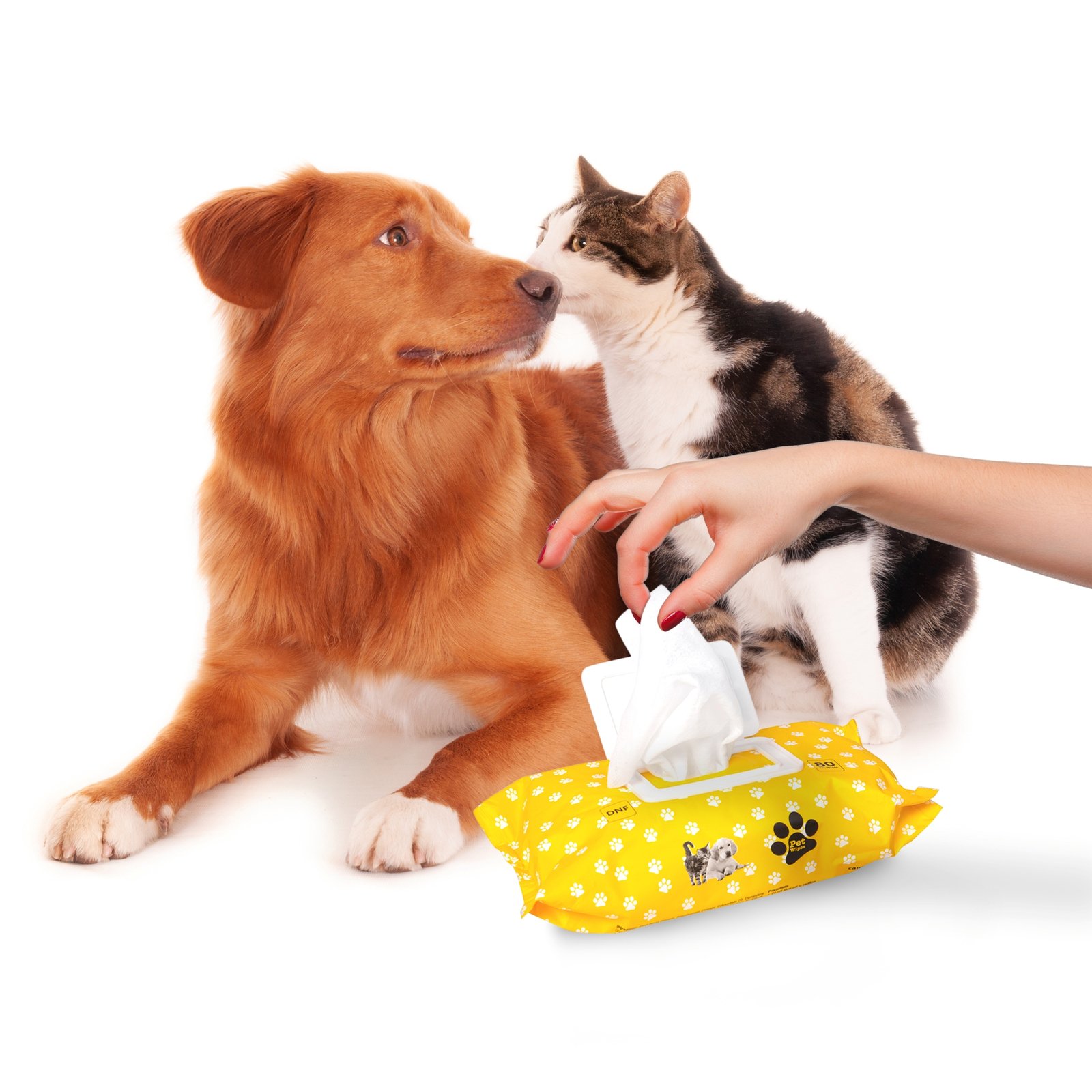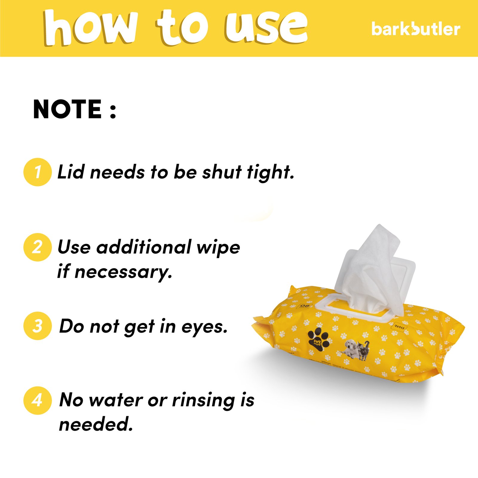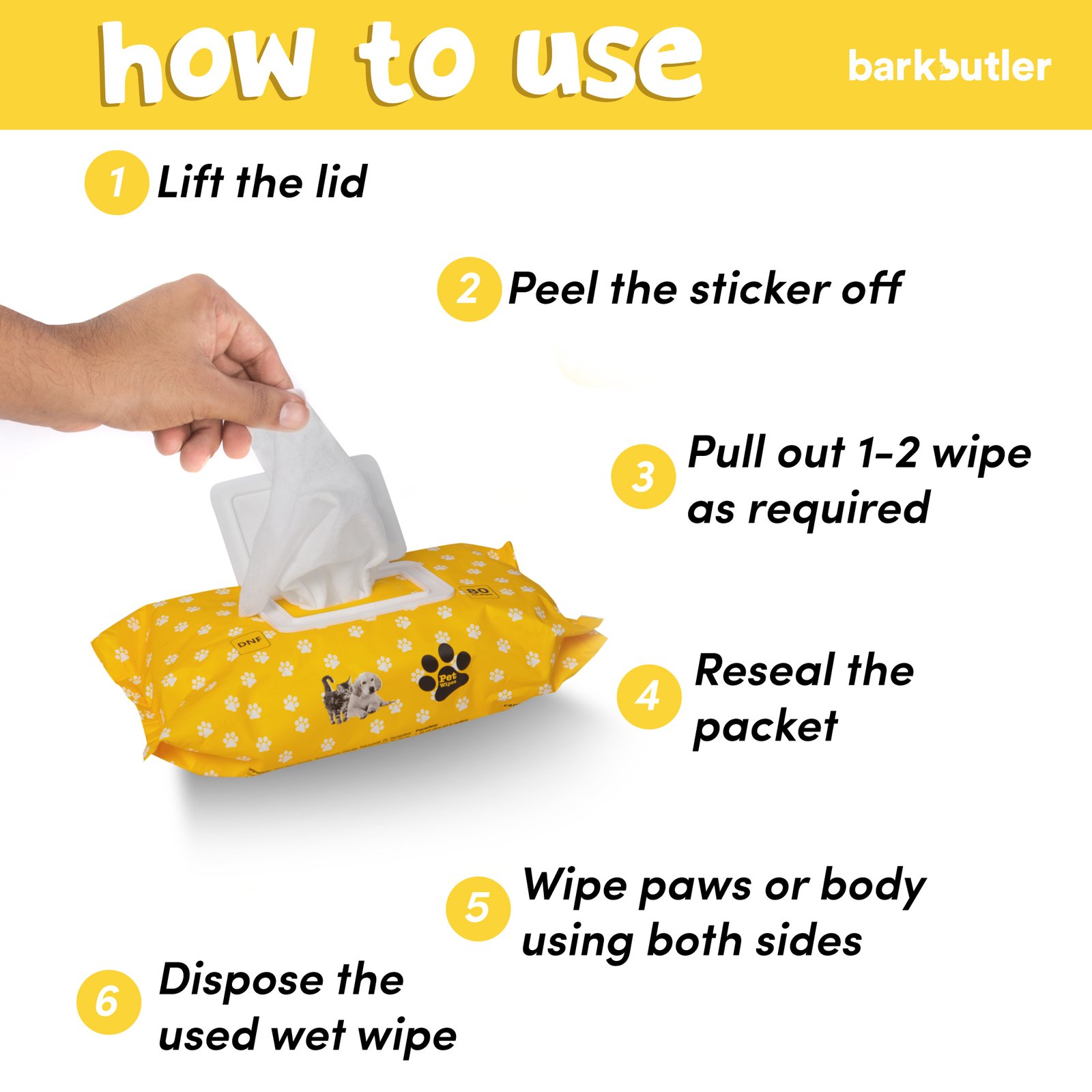 These pet wipes are appropriate for all pets of all sizes. Each Pet wipe measures at 20 cm x 17 cm. It is used as a disinfectant to keep paws, body & face clean, no water or rinsing required. Manufactured in an FDA approved facility, Alcohol-free & unscented, making it safe by keeping harsh & unnecessary chemicals away for your pet.