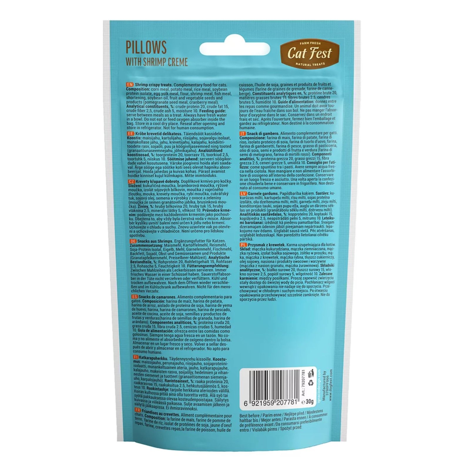 Catfest Pillows with Shrimp Cream for Cats is the perfect treat for your furry friend. Made from 100% natural and healthy ingredients, free from artificial flavors, colors, and preservatives, these treats are farm-fresh and high in protein. The crispy crust and delicate shrimp cream filling make these treats highly palatable and irresistible to cats of all breeds. Perfect for adult cats, kittens, and even Persian cats, these treats are the best choice for a healthy and nutritious snack. Whether for training, snacking, or just because, Catfest Pillows with Shrimp Cream for Cats will have your cat meowing for more!