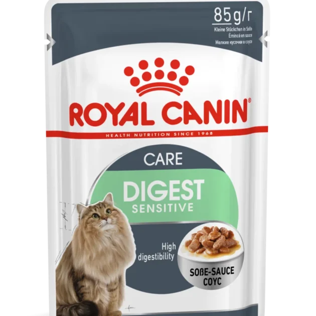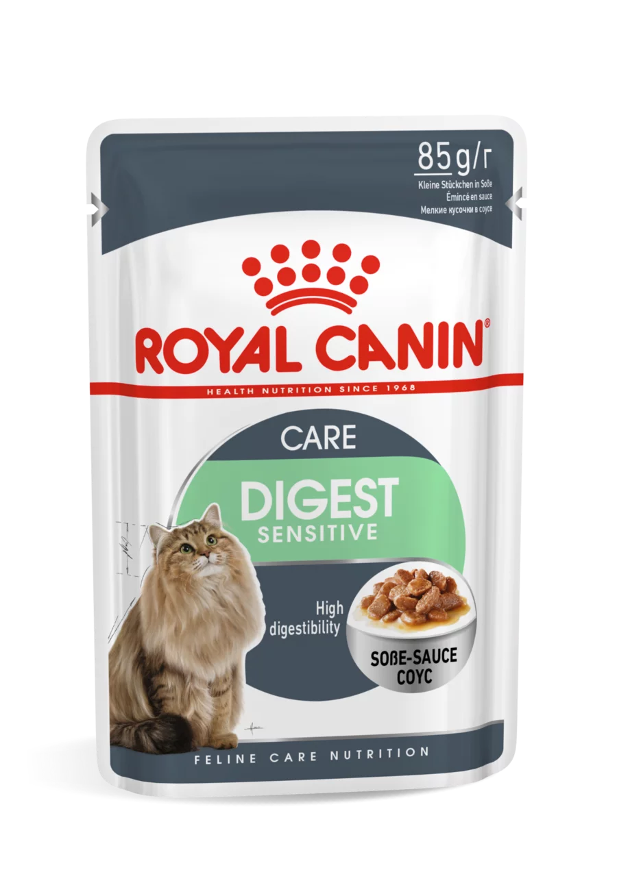 ROYAL CANIN® Digest Sensitive in Gravy provides a diet that is highly digestible for cats that are sometimes have sensitive stomachs, it also contains specially selected nutrients that help to reduce your cat’s faecal odour. The high rate of digestibility provided by ROYAL CANIN® Digest Sensitive in Gravy will ensure that your cat receives more of the nutrients it needs. The low fat content in this diet can also contribute to maintaining an ideal, healthy weight. The protein included is at an optimal level to support muscle and bone strength whilst still maintaining digestive health in your cat’s sensitive tummy. It will also ensure that when your cat does its business, the odour won’t be distractingly strong – which in itself is a sign of good digestive health. This diet also helps support a health urinary traction through an optimal, reduced concentration of minerals. To cater to each cat’s individual preferences, ROYAL CANIN® Digest Sensitive is also available as dry food, with crunchy and tasty kibble. If you’re considering mixed feeding, simply follow our feeding guidelines to ensure your cat gets an accurate amount of both wet and dry food for optimal benefit.