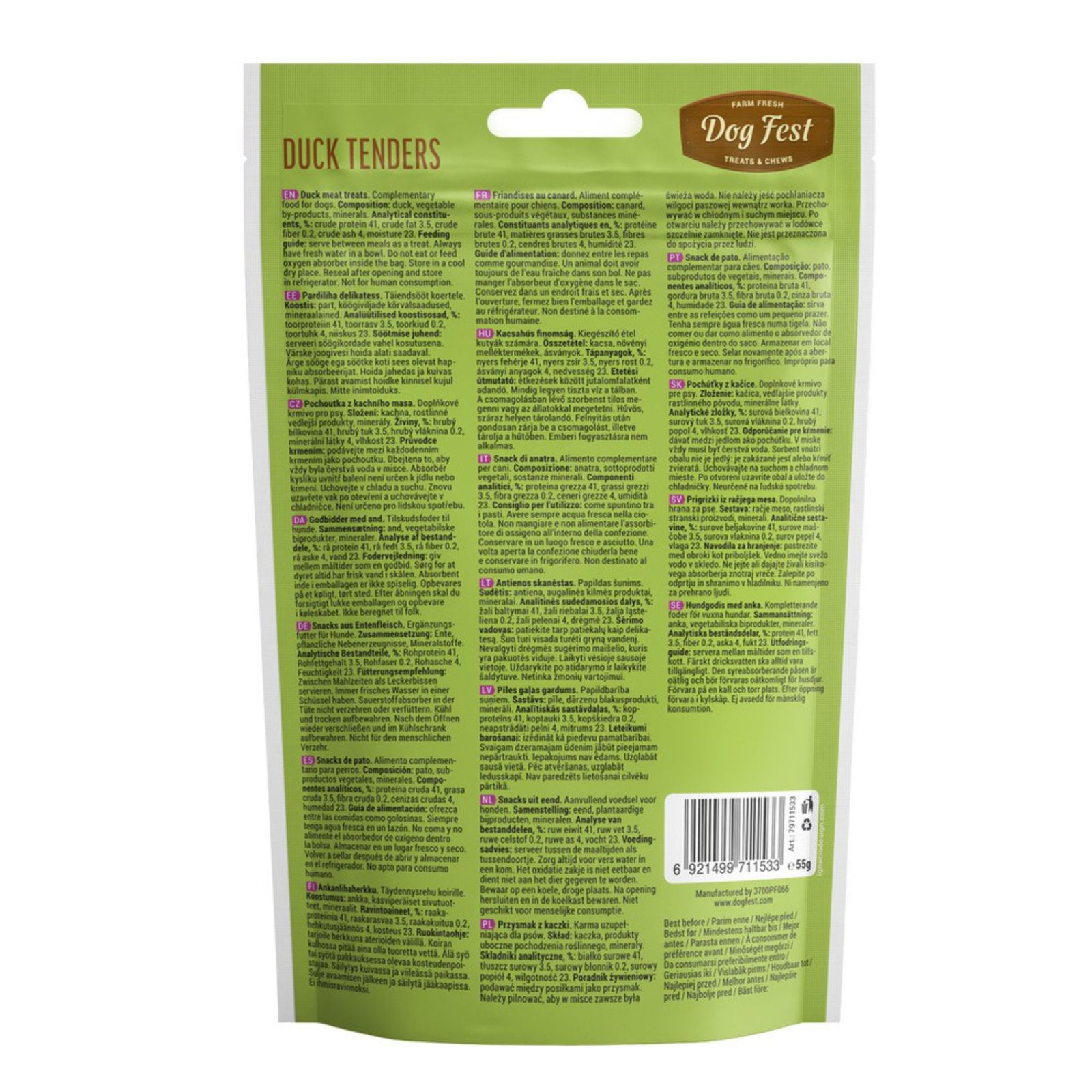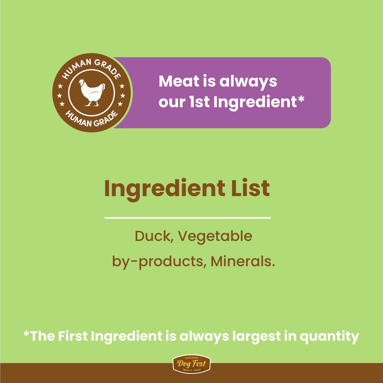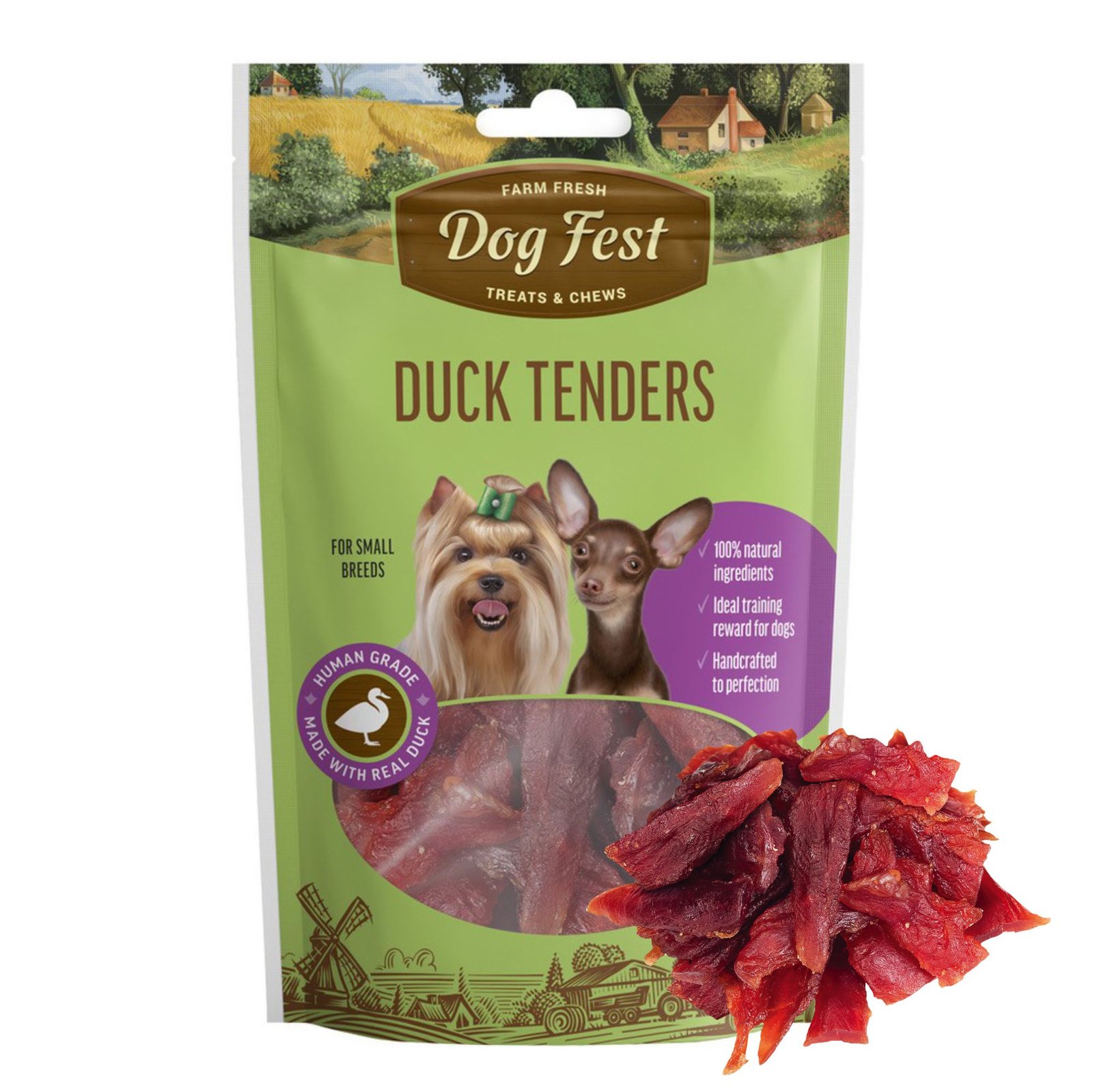 Dogfest Duck tenders small dog breed treats are the perfect snack for your furry friend. Made with 100% natural and healthy ingredients, these treats are free from artificial flavors, colors, and preservatives. Our human-grade meat is sourced directly from farms and is the first ingredient, high in protein to provide your dog with energy. Ancestral to dogs, duck is a tasty treat that will make your pet feel like royalty. Recommended for all small dog breeds, from Shih Tzus to beagles, these soft, chewy treats are perfect for smaller dog breeds. Find the best, imported, premium, and dried dog treats that are healthy, natural, and delicious.