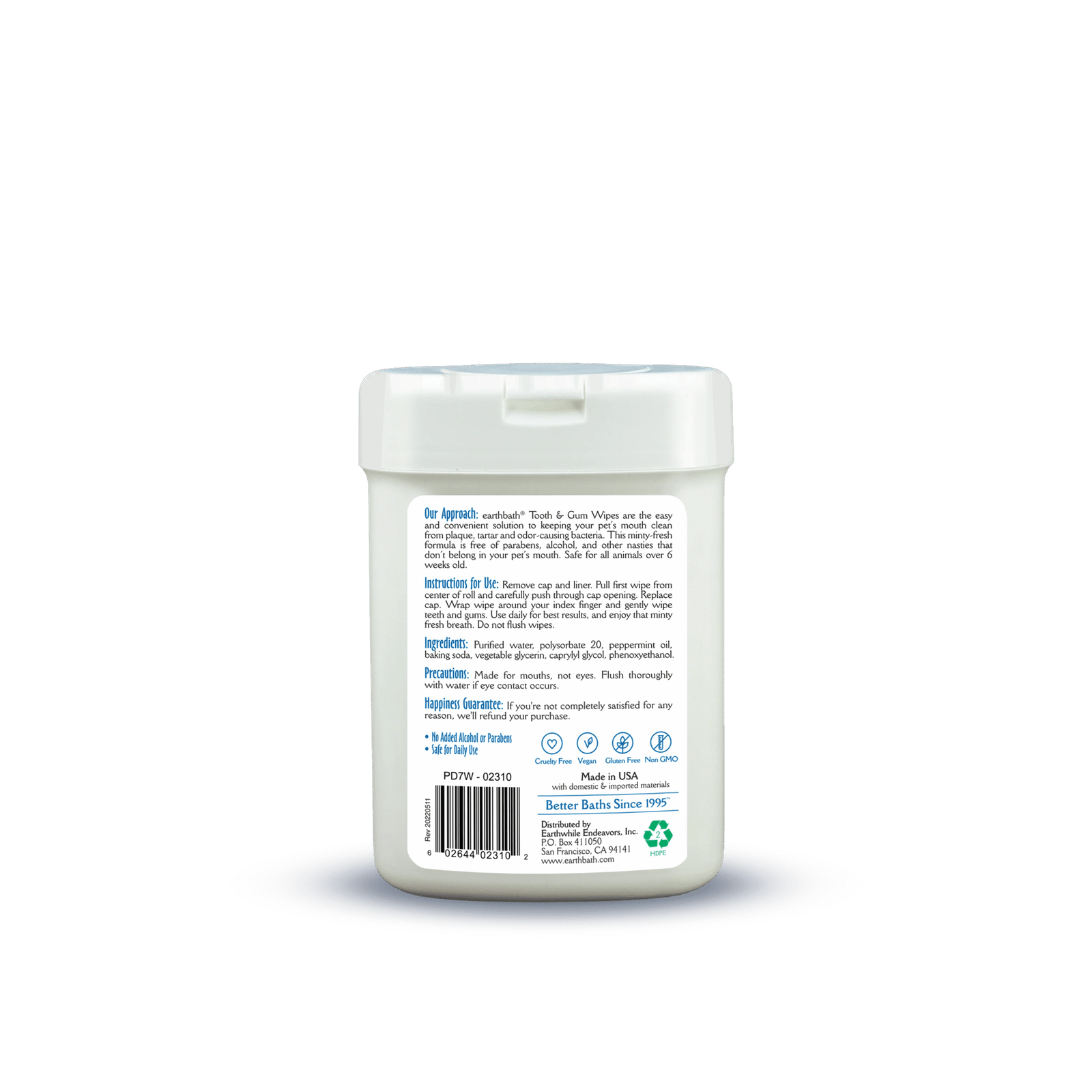 “earthbath Tooth and Gum wipes provide a simple and gentle alternative allowing owners to maintain their pet’s oral hygiene without causing discomfort or distress.