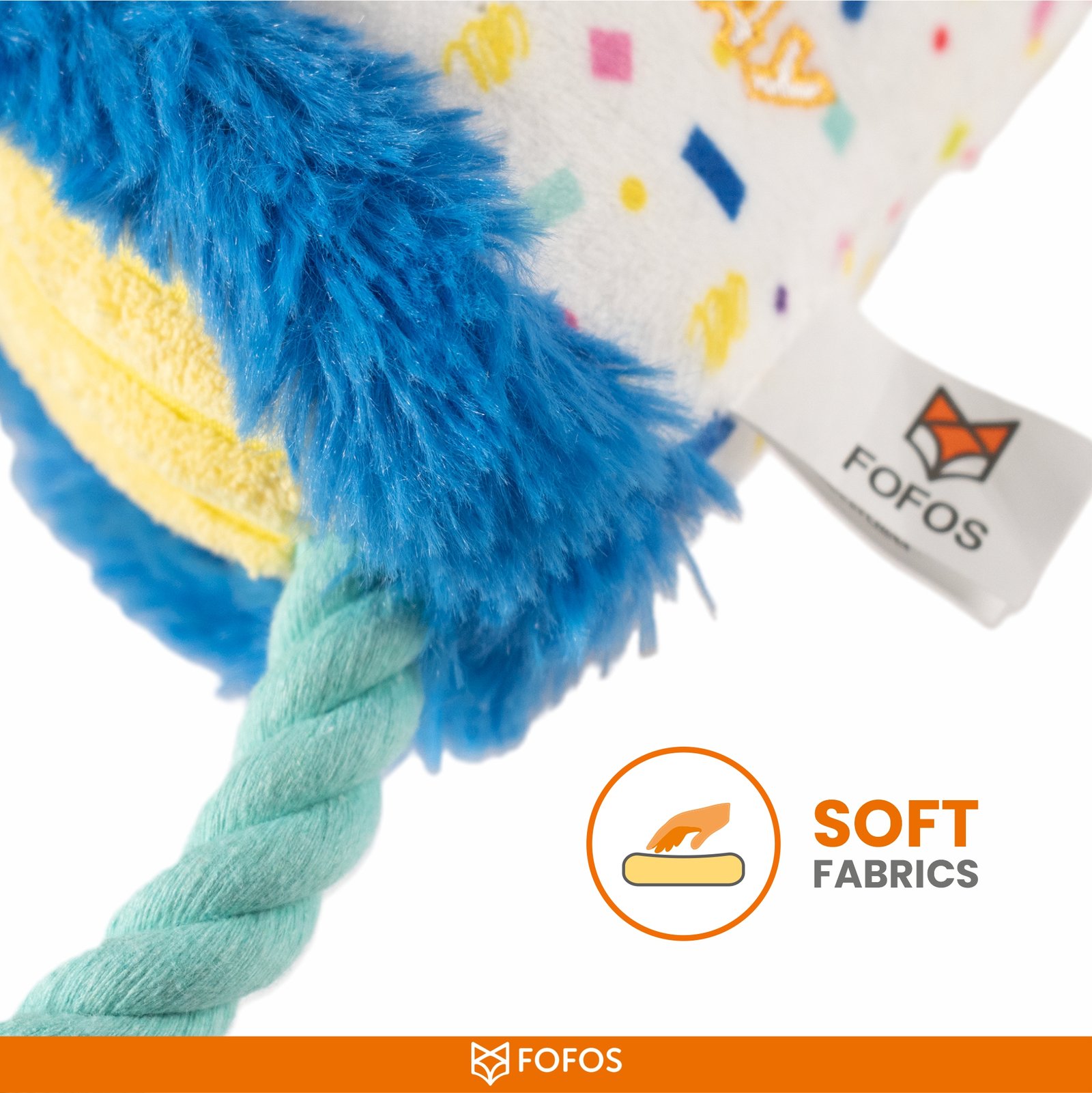 Welcome to the world of BarkButler x FOFOS, where we design top-notch toys for your beloved furry friends. Introducing the BarkButler x FOFOS Birthday Hat Dog Toy, a unique blend of rope and plush toys that ensures fun and excitement for your pet. The squeaker inside keeps your dog engaged and entertained for longer durations. This dog toy is machine washable and made from soft fabrics, making it a great cuddle buddy for your pet. Additionally, this soft toy for dogs doubles as a chew toy, cleaning your pet’s teeth while they play, thus promoting dental health.