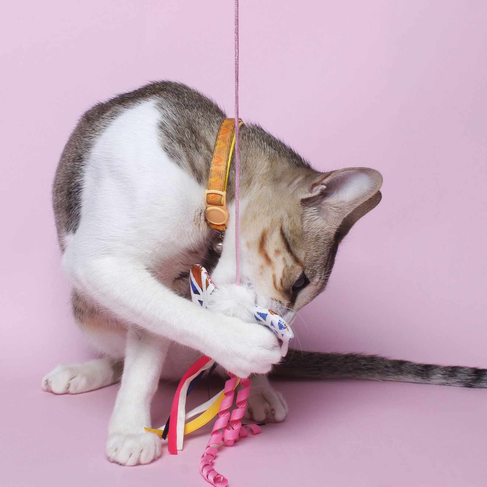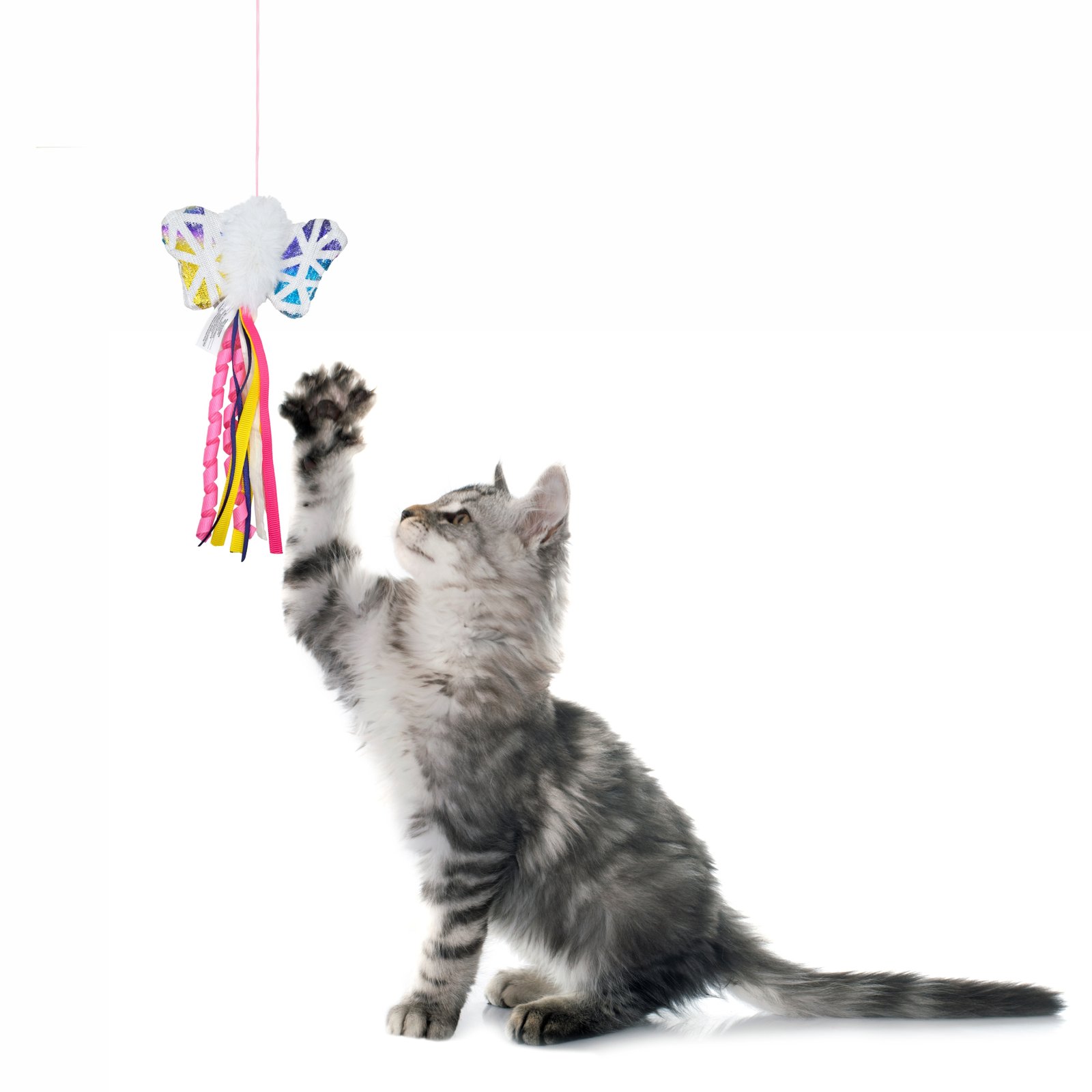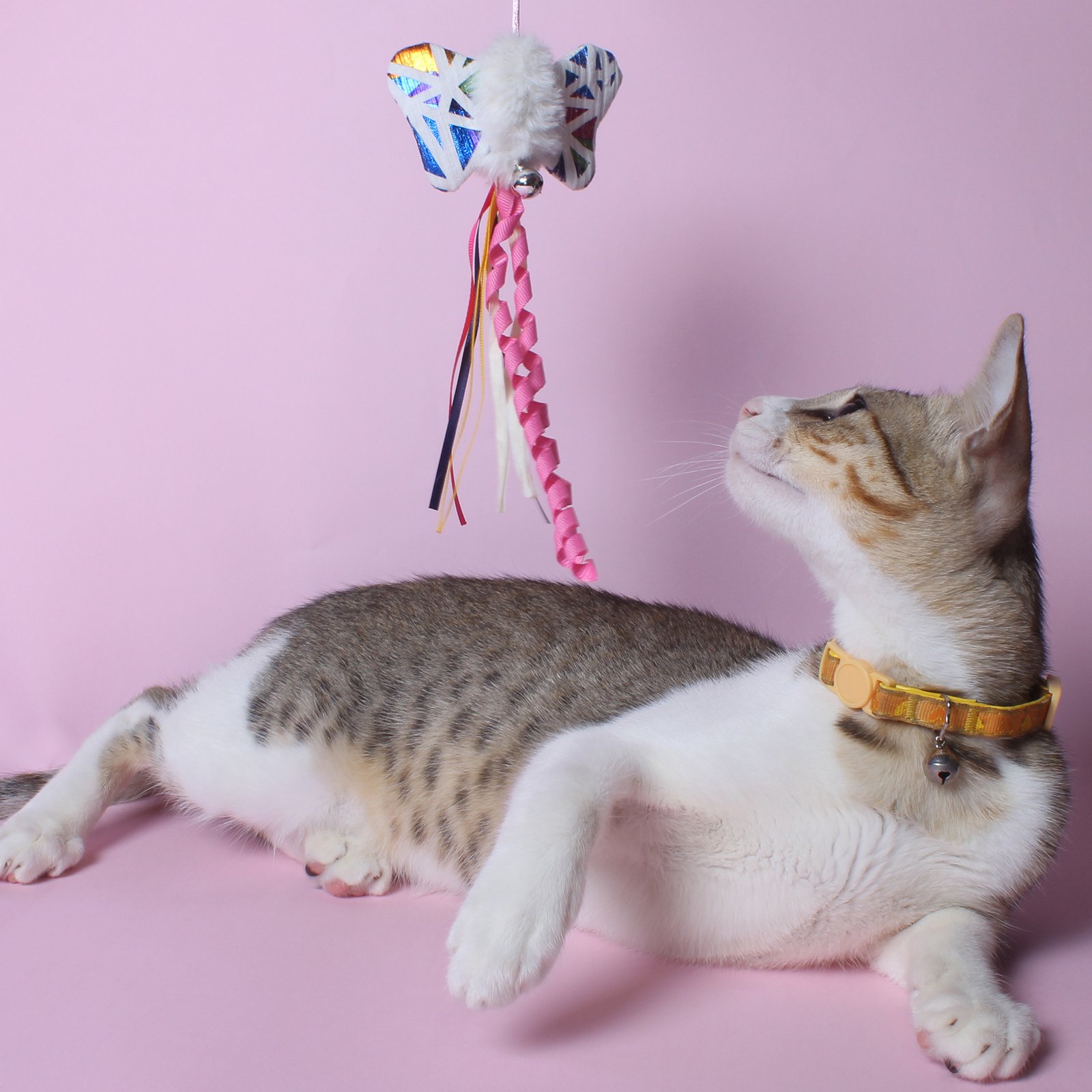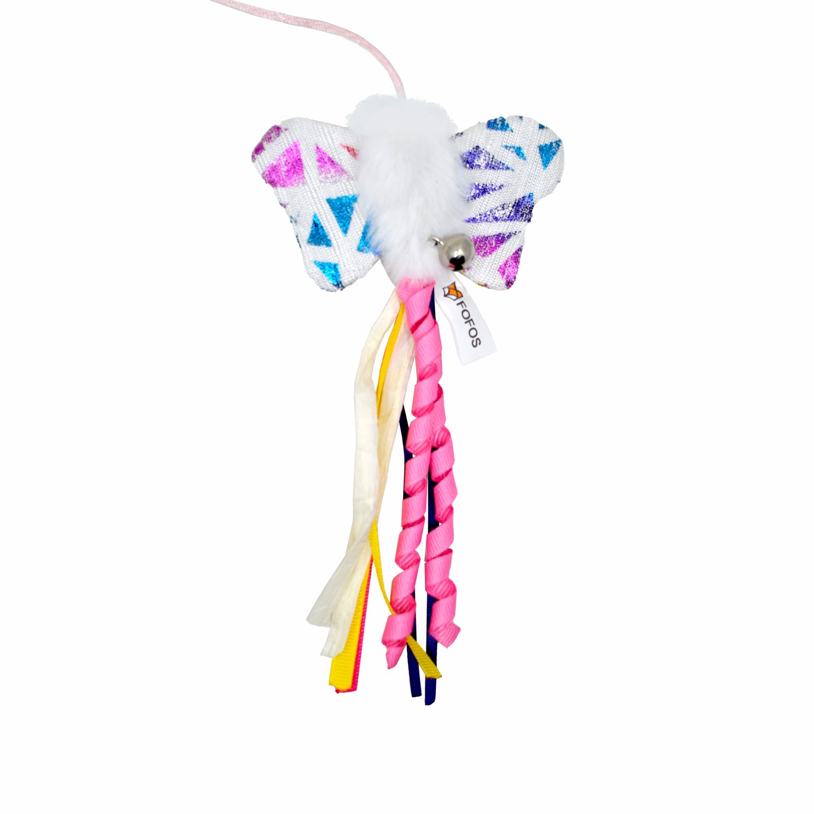 “Fofos Blocky Meow Butterfly Wand is a fun cat teaser toy with a bell and imported US grade dried catnip leaves and grass powder inside. A durable wooden stick , robust rope and ribbons attached to it keep your cat engrossed. This catnip toy is a combination of durable wood and soft fabrics. Interactive toys are known to unleash a kitten’s natural desire to hunt, chase, play, chew, swat and even promote harmless biting and scratching. This cat toy helps your cat pursue its true instinctive behaviour and is a great confidence builder especially for cats with anxiety. Kitten teaser toys are the best way to exercise your cat and keep them alert. Fun engaging cat toys give your cat a mouse or a ball chase-like feeling ensuring good physical stimulation while the catnips give them a calm and relaxing experience. Ideal for small pet kittens as well as for older cats of Persian and other breeds as well. How to use: We recommend consistent and scheduled playtime. Start with five-minute a day sessions. Just like a dog needs a walk, a cat needs playtime! What is Catnip: Catnip is a plant related to mint and contains an essential oil called nepetalactone that is known to cause euphoric, calming, and relaxing effects on cats. Catnip in small doses is completely safe, non-addictive for your kitten as the effects last about 10 mins for most cats.”