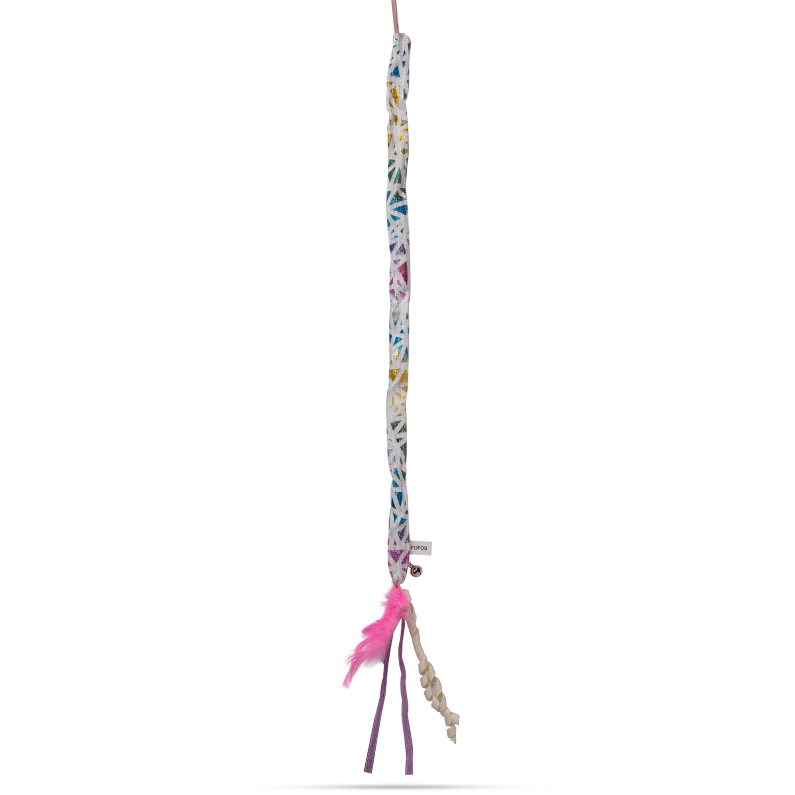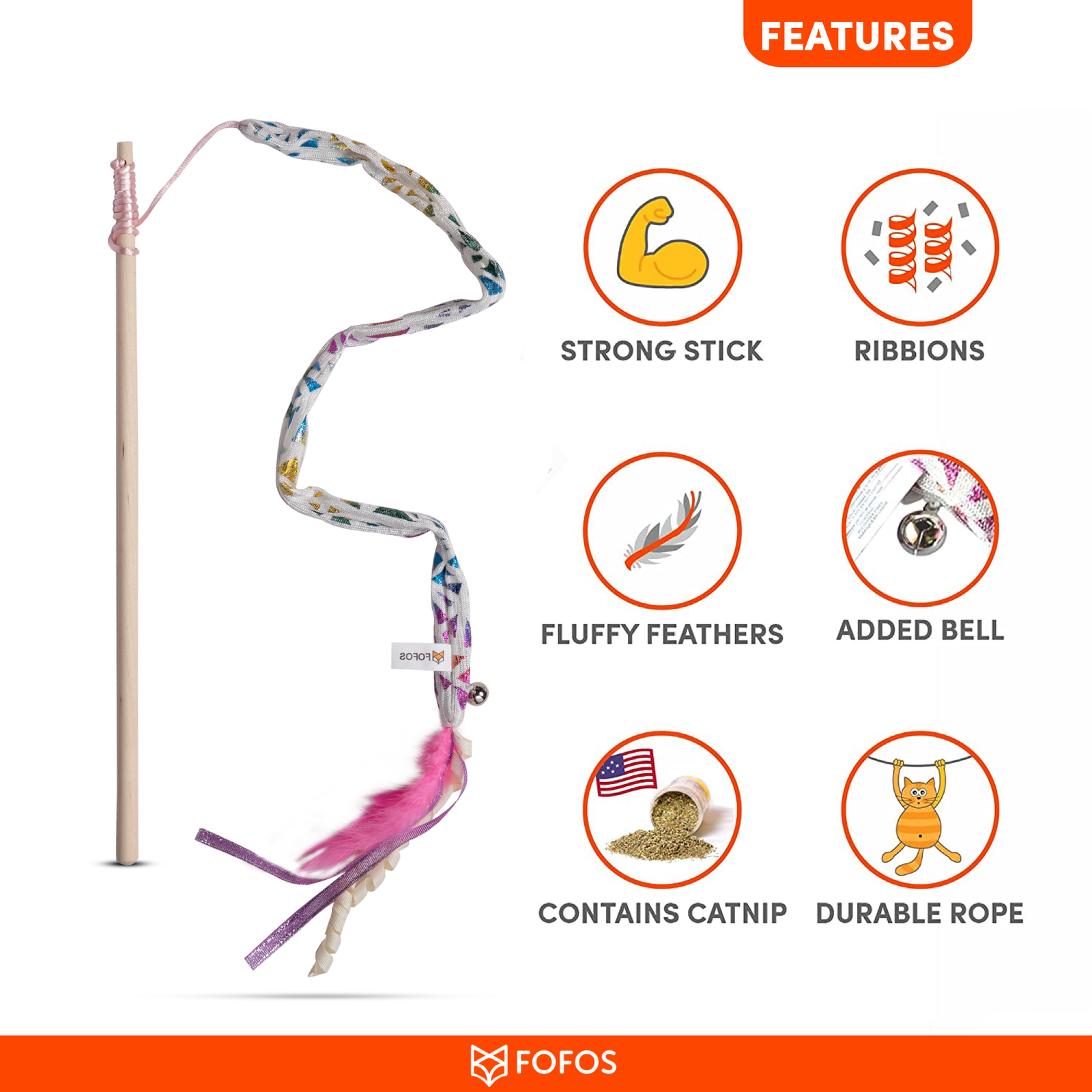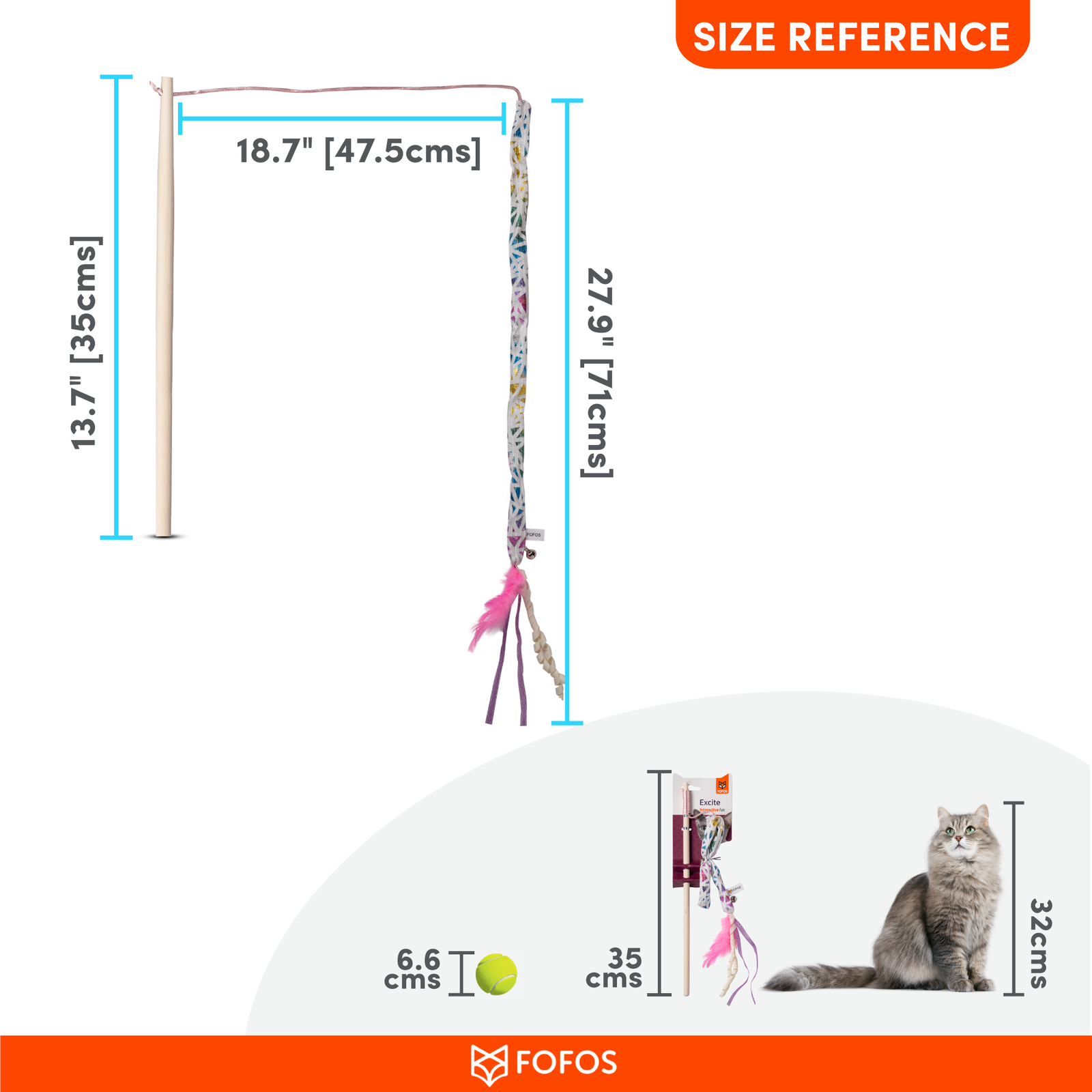 “Fofos Blocky Meow Feather Wand is a fun cat teaser toy with a bell and imported US grade dried catnip leaves and grass powder inside. A durable wooden stick , robust rope, fluffy feathers and ribbons attached to it keep your cat engrossed. This catnip toy is a combination of durable wood and soft fabrics. Interactive toys are known to unleash a kitten’s natural desire to hunt, chase, play, chew, swat and even promote harmless biting and scratching. This cat toy helps your cat pursue its true instinctive behaviour and is a great confidence builder especially for cats with anxiety. Kitten teaser toys are the best way to exercise your cat and keep them alert. Fun engaging cat toys give your cat a mouse or a ball chase-like feeling ensuring good physical stimulation while the catnips give them a calm and relaxing experience. Ideal for small pet kittens as well as for older cats of Persian and other breeds as well. How to use: We recommend consistent and scheduled playtime. Start with five-minute a day sessions. Just like a dog needs a walk, a cat needs playtime! What is Catnip: Catnip is a plant related to mint and contains an essential oil called nepetalactone that is known to cause euphoric, calming, and relaxing effects on cats. Catnip in small doses is completely safe, non-addictive for your kitten as the effects last about 10 mins for most cats.”