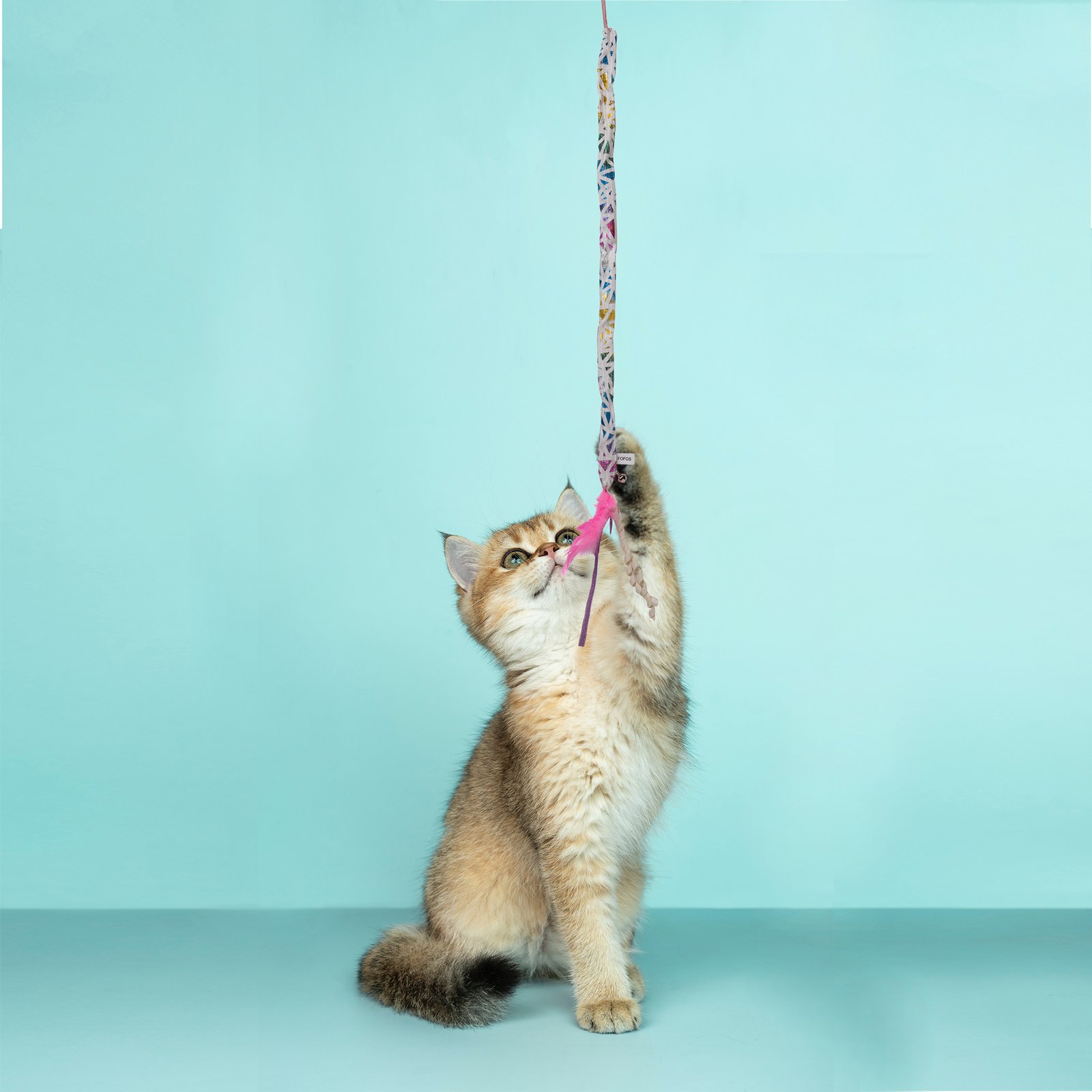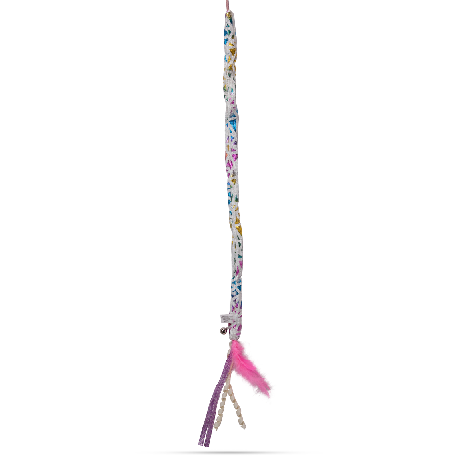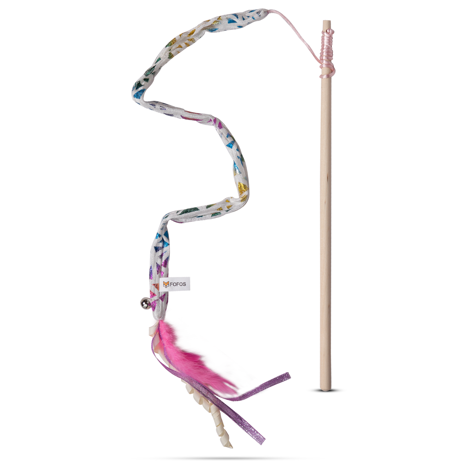 “Fofos Blocky Meow Feather Wand is a fun cat teaser toy with a bell and imported US grade dried catnip leaves and grass powder inside. A durable wooden stick , robust rope, fluffy feathers and ribbons attached to it keep your cat engrossed. This catnip toy is a combination of durable wood and soft fabrics. Interactive toys are known to unleash a kitten’s natural desire to hunt, chase, play, chew, swat and even promote harmless biting and scratching. This cat toy helps your cat pursue its true instinctive behaviour and is a great confidence builder especially for cats with anxiety. Kitten teaser toys are the best way to exercise your cat and keep them alert. Fun engaging cat toys give your cat a mouse or a ball chase-like feeling ensuring good physical stimulation while the catnips give them a calm and relaxing experience. Ideal for small pet kittens as well as for older cats of Persian and other breeds as well. How to use: We recommend consistent and scheduled playtime. Start with five-minute a day sessions. Just like a dog needs a walk, a cat needs playtime! What is Catnip: Catnip is a plant related to mint and contains an essential oil called nepetalactone that is known to cause euphoric, calming, and relaxing effects on cats. Catnip in small doses is completely safe, non-addictive for your kitten as the effects last about 10 mins for most cats.”