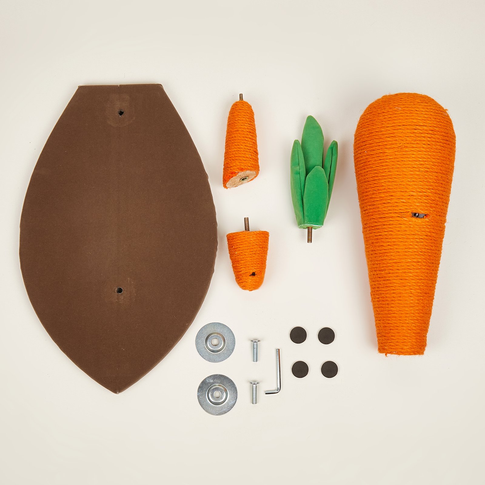 Introducing the Fofos Carrot Cat Scratcher, a unique and versatile addition to your cat’s environment. Its distinctive carrot-shaped design adds a whimsical touch, making it not only an interactive toy but also a stylish decorative piece for your home. This adjustable scratcher allows your cat to climb and scratch with ease, promoting exercise and healthy play. Crafted from natural sisal rope, it provides a satisfying texture that maintains your cat’s claws and saves your furniture and carpets from unwanted scratching. With its sturdy and long-lasting construction, this scratcher is designed to withstand your cat’s enthusiastic scratching behavior, ensuring it lasts. Plus, assembly is a breeze with the provided instructions and tools, making it a hassle-free experience, so easy that even your feline companion could set it up!