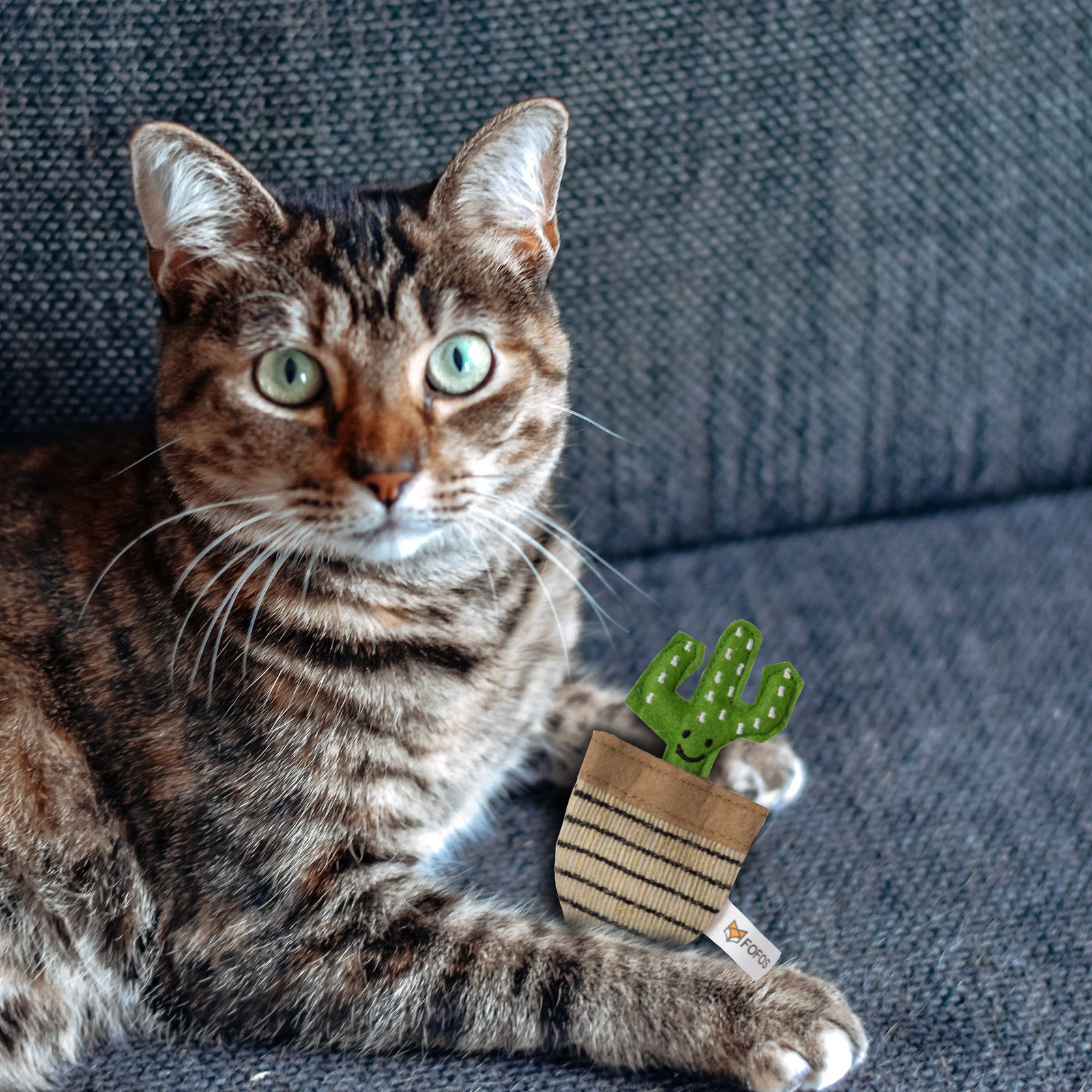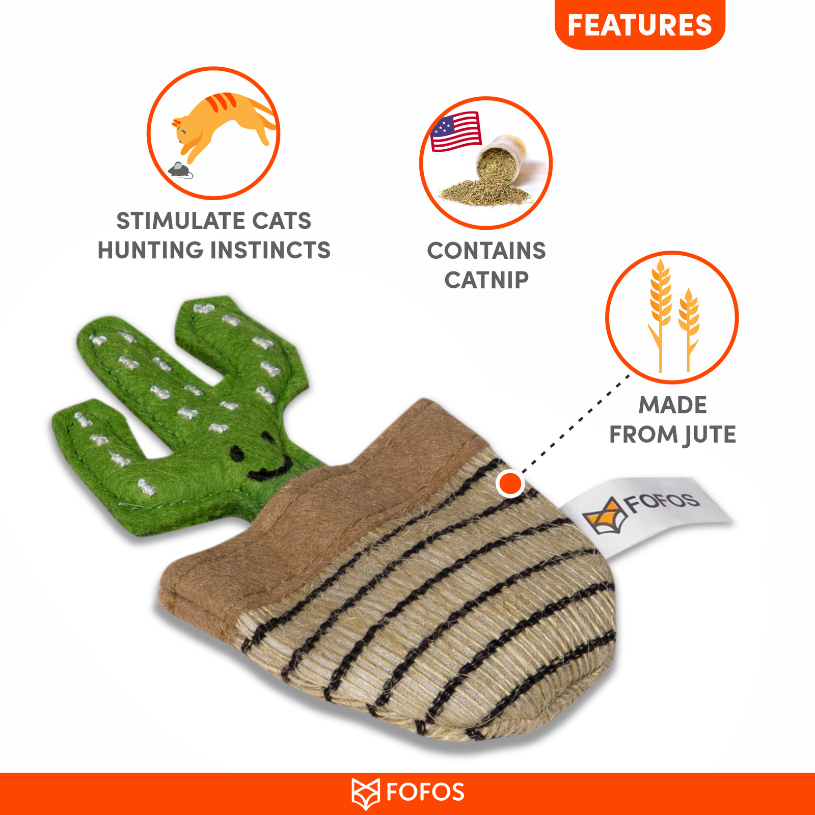 Catnip is a plant related to mint and contains an essential oil called nepetalactone that is known to cause euphoric, calming, and relaxing effects on cats. Catnip in small doses is completely safe, non-addictive for your kitten as the effects last about 10 mins for most cats. Fofos Green Cactus is a cute cat playing toy filled with imported US grade catnip dried leaves and grass powder. This interactive toy allows your cat to chew, swat, nip, play, and even promotes harmless biting and scratching. Fun engaging cat toys give your cat a mouse chase-like feeling ensuring good physical stimulation while the catnips give them a calm and relaxing experience. Ideal for small pet kittens above 6 months of age as well as for older cats of Persian and other breeds as well. How to use: For maximum utility allow playtime for 30mins a day, then take away and repeat the following day.