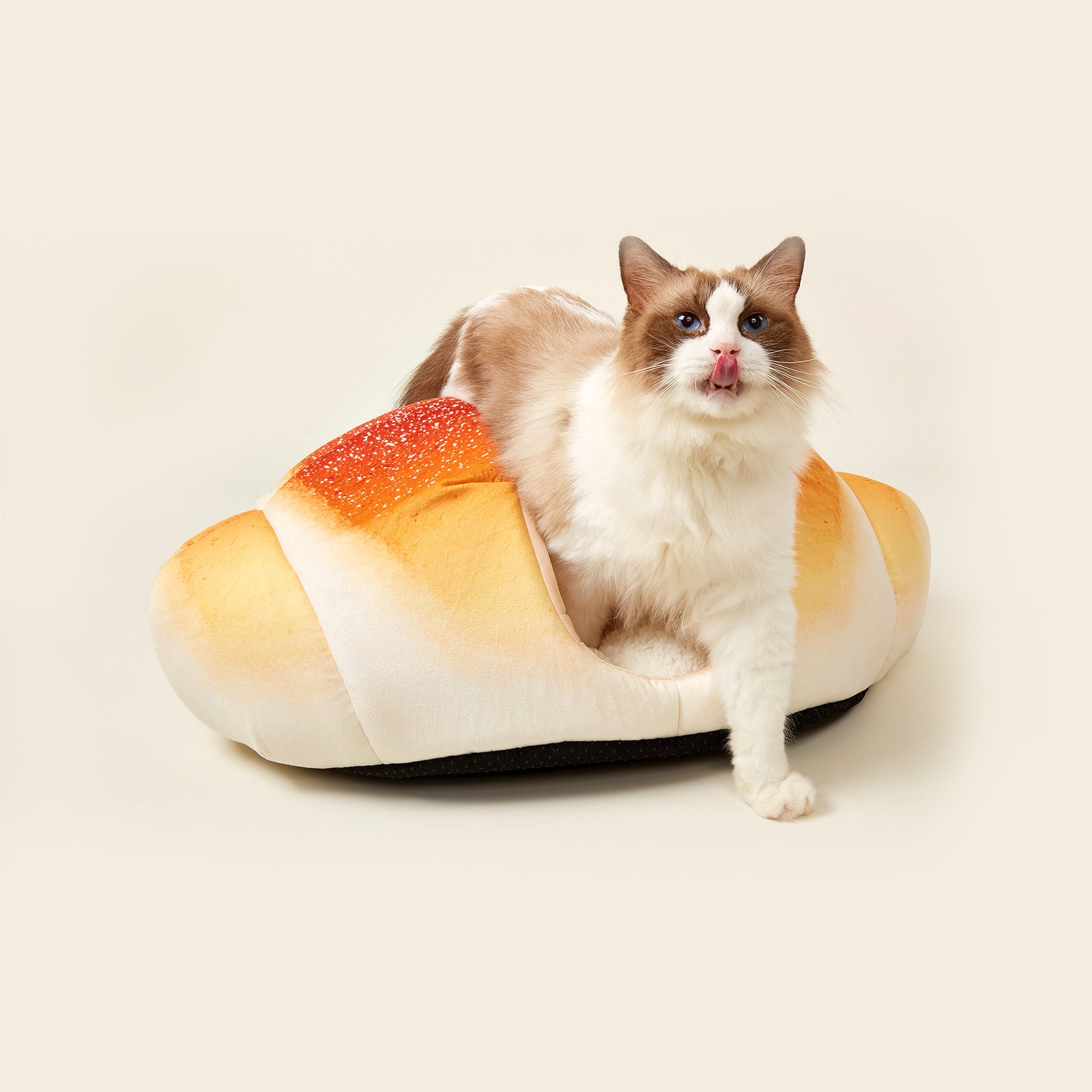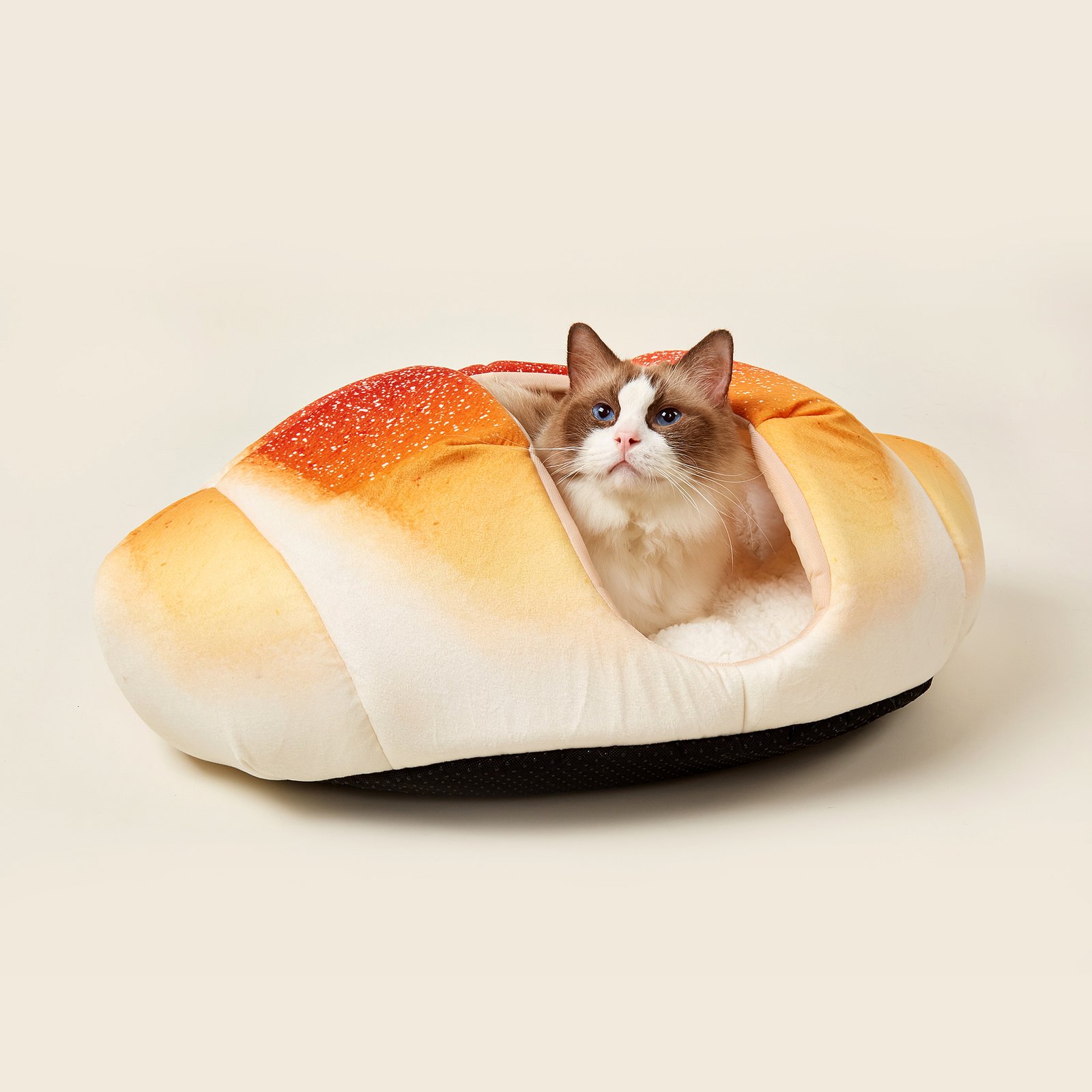 Bonjour, Monsieur/Mademoiselle, peut-on caresser votre chat? Voudrait-elle un croissant? Barkbutler’s Croissant is the closest thing you have to a cultured kitty. Warm and toasty, comfy and hilarious. A snack bed for a snacc.In style and in snug. Homely and nap-inducing. Cozy material puts the ‘a snug bug’ saying into a new perspective. Durability is ensured; the bed is machine washable and will hold its shape after. Have everyone entering your house talking.