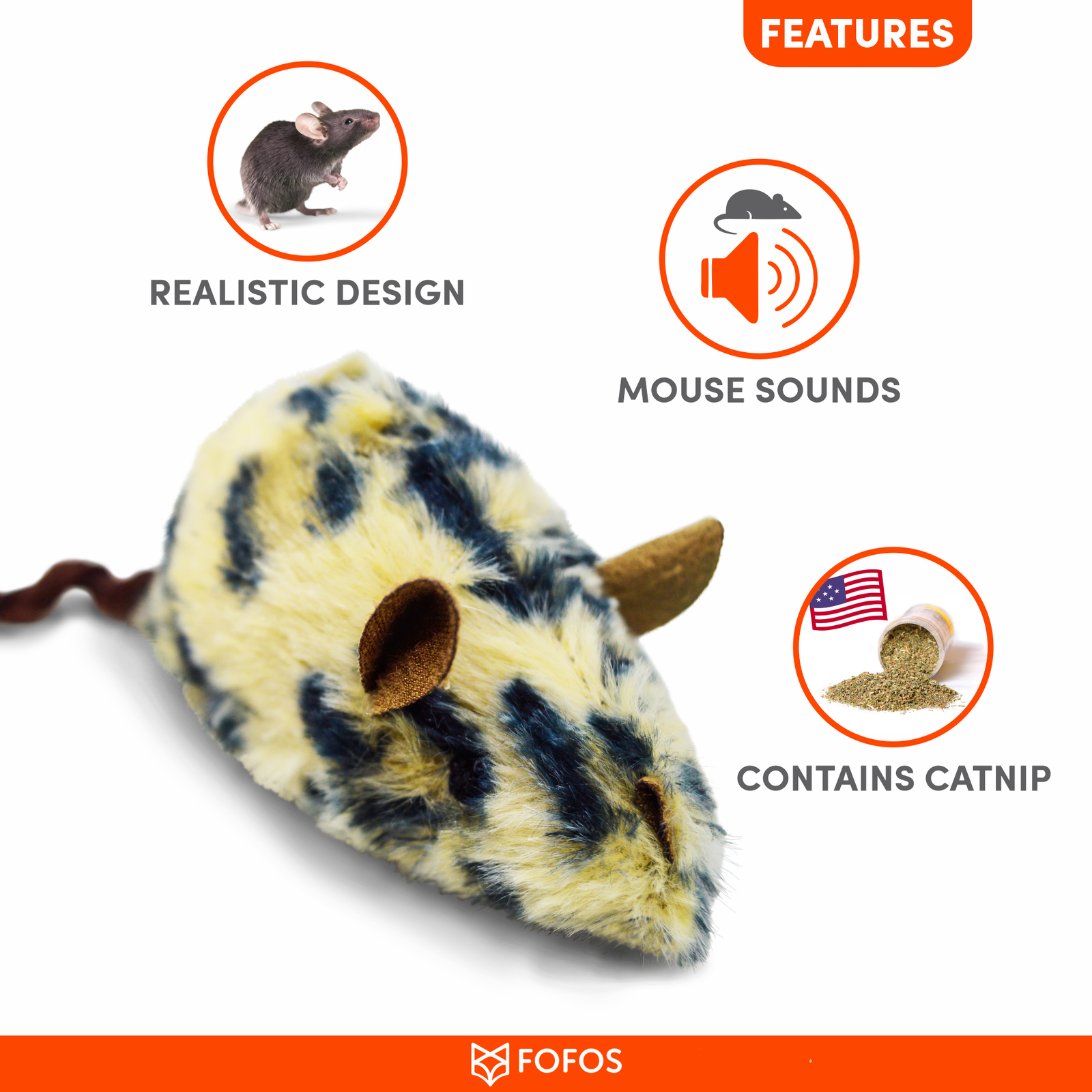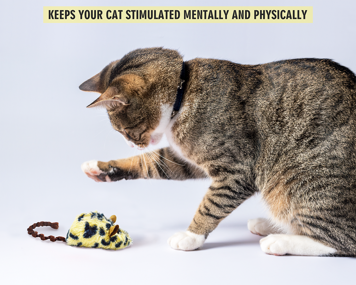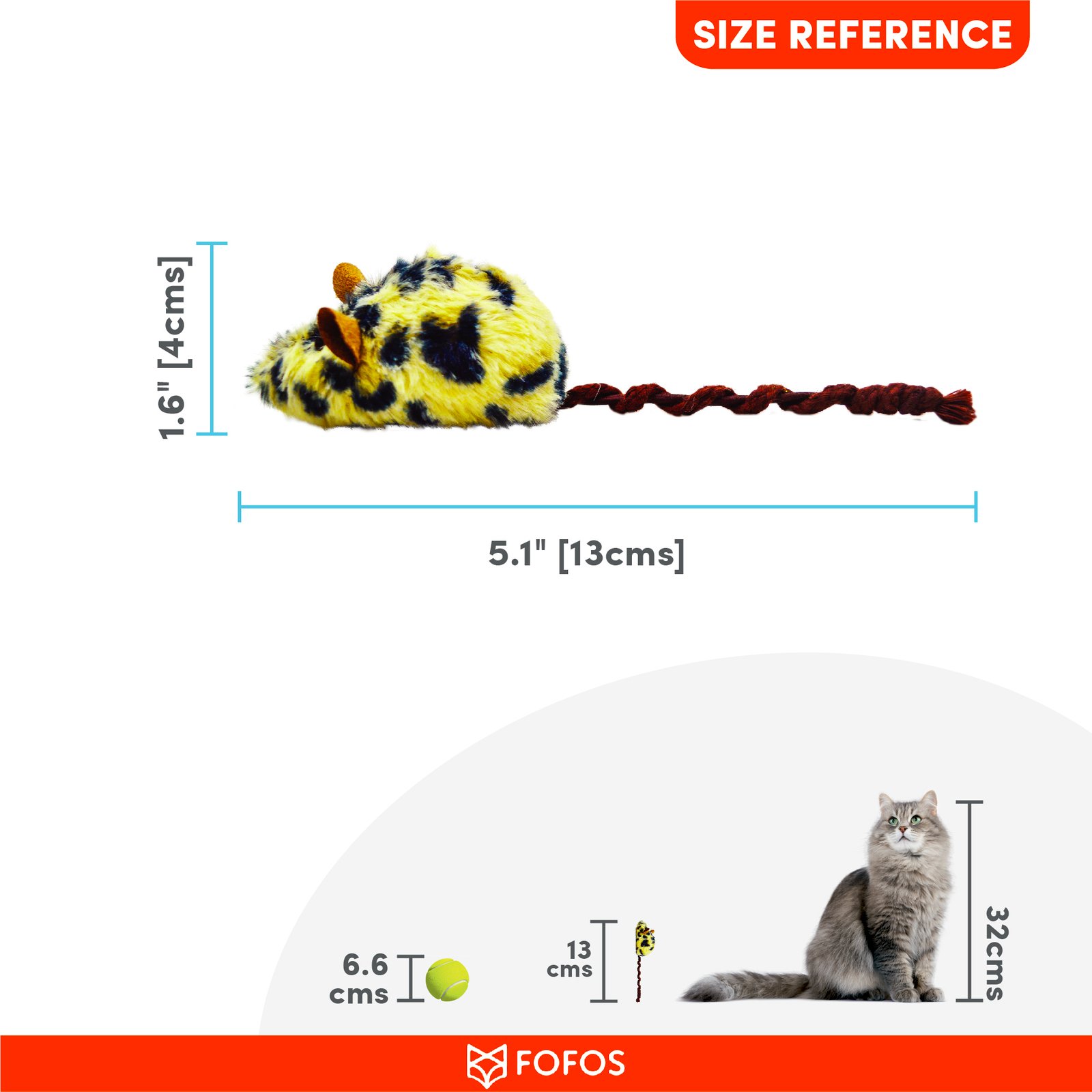 Fofos Dotted Mouse is a cute cat toy that mimics an actual mouse with its life-like features. It is made from soft plush polyester fabric resembling a rat or a mouse. This cat playing toy is battery operated and can be moved to generate a squeak like sound which helps grab your cat’s attention. It has imported US grade dried catnip leaves and grass powder inside. Interactive toys are known to unleash a kitten’s natural desire to chase, nip, play, chew, swat and even promote harmless biting , scratching and chewing. Kitten toys are the best way to exercise your cat and keep them alert. Fun engaging toys give your cat the sensation of interacting with an actual mouse or a fish ensuring good physical stimulation while the catnips give them a calm and relaxing experience. Ideal for small pet kittens as well as for older cats of Persian and other breeds as well. How to use: We recommend consistent and scheduled playtime. Start with five-minute a day sessions. Just like a dog needs a walk, a cat needs playtime! What is Catnip: Catnip is a plant related to mint and contains an essential oil called nepetalactone that is known to cause euphoric, calming, and relaxing effects on cats. Catnip in small doses is completely safe, non-addictive for your kitten as the effects last about 10 mins for most cats.