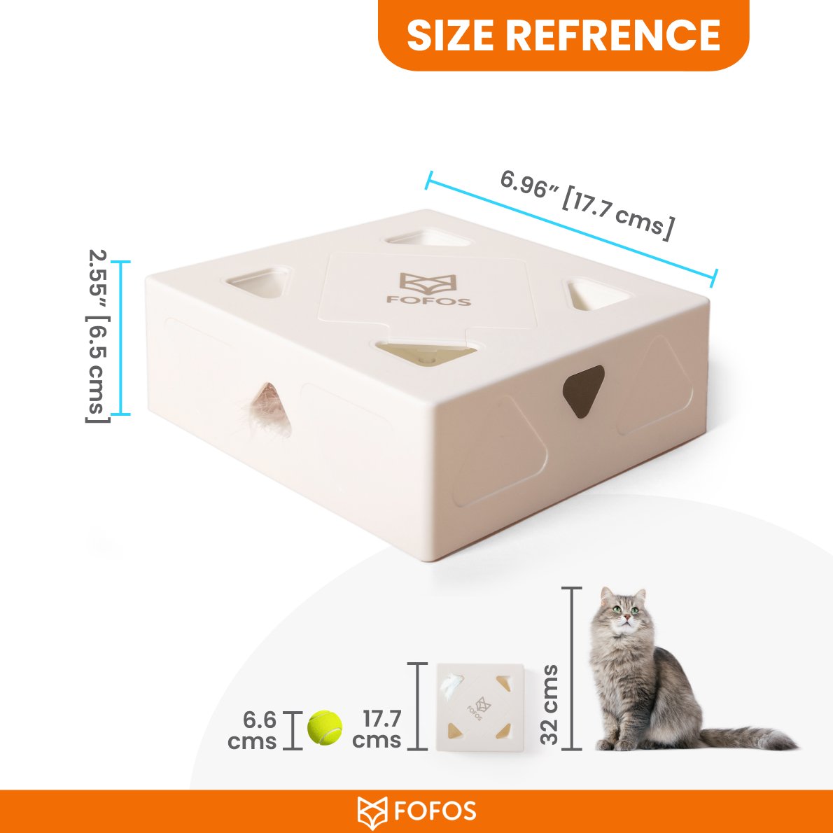 Introducing the Erraticat Electronic Cat Toy, brought to you by Barkbutler x Fofos. Designed with your cat’s natural hunting instincts in mind, this toy features PIR infrared motion activated technology that causes the feathers to move randomly through the 5 holes on the toy. This feature is sure to keep your cat engaged and entertained for hours on end. The Erraticat also comes with 6 real feather replacements that can be easily swapped out if any get damaged, allowing your cat to continue their prey-like play. The body of the toy is made from durable ABS plastic, ensuring long-lasting use even for the most active of cats. To save power, the Erraticat has an auto-sleep mode that activates after 5 minutes of being idle. Plus, it’s USB rechargeable, making it a convenient and eco-friendly choice. This electronic cat toy is perfect for all cats, including Persian cats and kittens, and can be used as a standalone toy or with a variety of other cat toys such as wand and teaser toys. It’s also great for interactive play and can provide artificial stimulation for your feline friend. In summary, the Erraticat Electronic Cat Toy is the best automatic cat toy available, providing your cat with hours of play, stimulation, and entertainment. Get yours today and see the joy it brings to your furry friend!