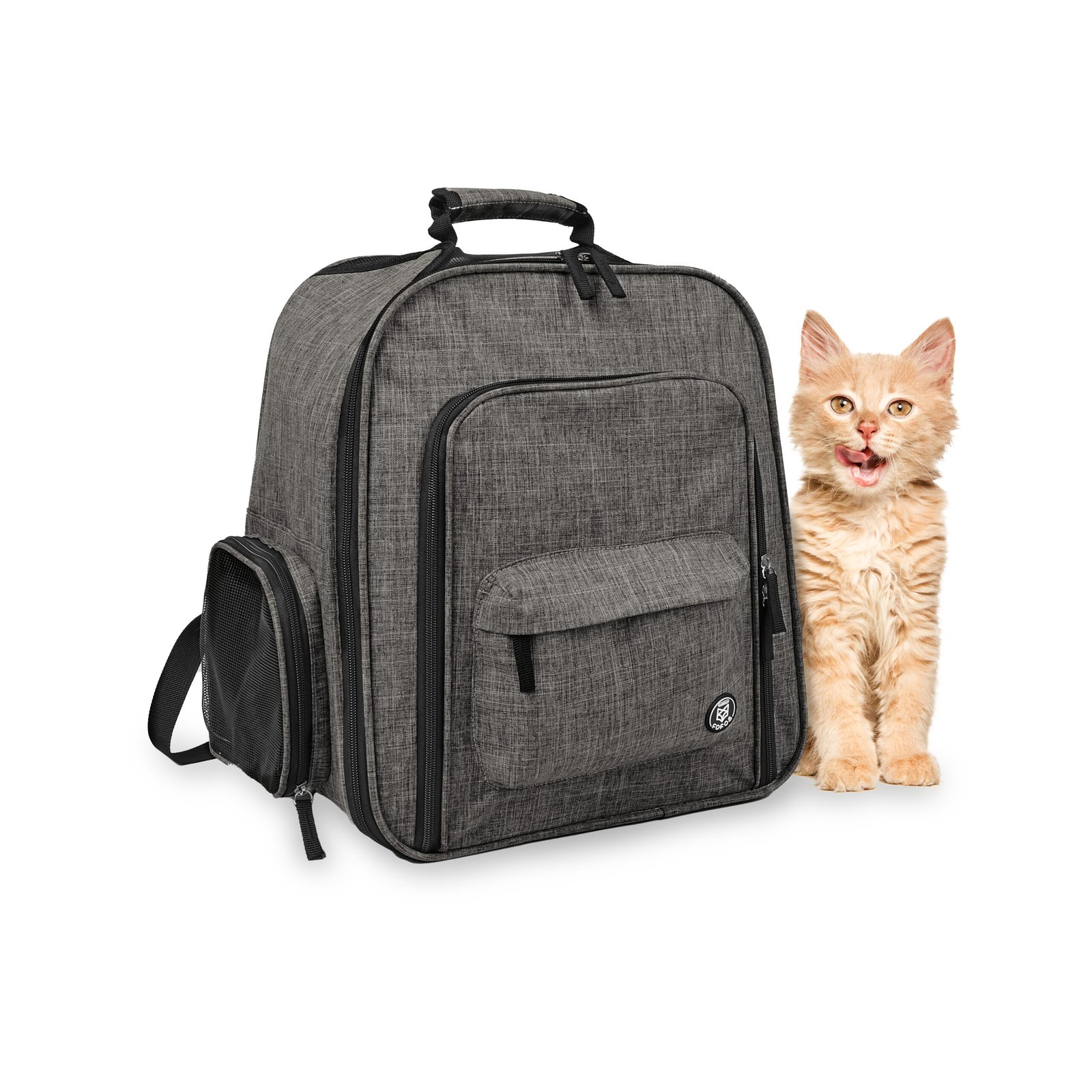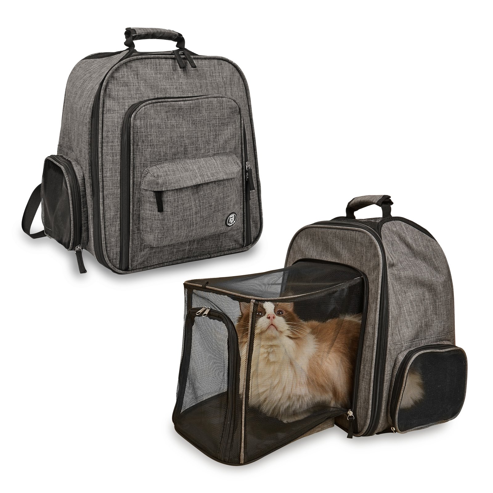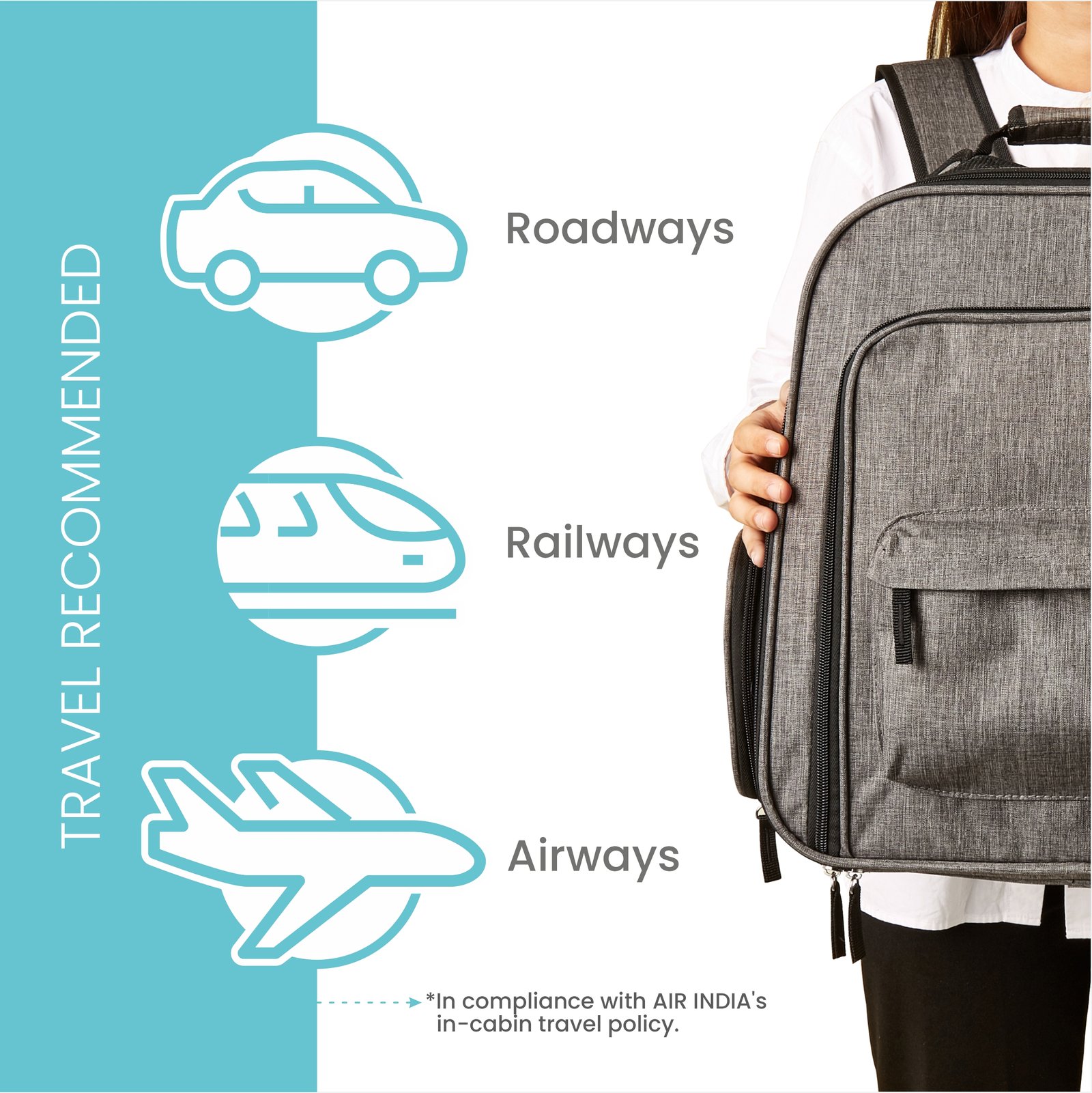 Soft-sided expandable pet carrier backpack with an anti-scratch breathable mesh window, fabric and mesh extensions on both sides for maximum airflow/ventilation and vision. The bottom has a removable padded base with a machine washable cover that acts like a cushion allowing your pet to rest with ease while travelling. Sturdy structure design with memory iron rods, a metal leash clip inside prevents your pet from jumping out. 1 large zipper pocket is added for food, toys, treats, water bottles etc and 1 side zipper pocket with a headphone outlet for extra storage This lightweight carrier comes with sturdy straps for hand & shoulder carry. Durable zippers provide extra security and safety. The Rubber Knuckle grid guard under the carrier prevents the bag from touching the ground and it can be folded to fit in your car or suitcase making it convenient to travel with. It provides a cosy and restful environment for your pet and reduces stress and anxiety travel. To choose the right carrier for your pet measure your pet’s length from neck to base of the tail (L), height from floor to top of the shoulder (H) and width (B) Carrier dimensions :L = 18.5 x B = 11 x H = 11 in Max pet dimensions L = 16 x B = 9 X H = 9IN Max weight capacity of 12 kgs This will ensure enough support and room for your pet to stretch and get comfortable. This pet carrier is suitable for fitting into large bicycle baskets, road travel, trips to vet/groomers etc