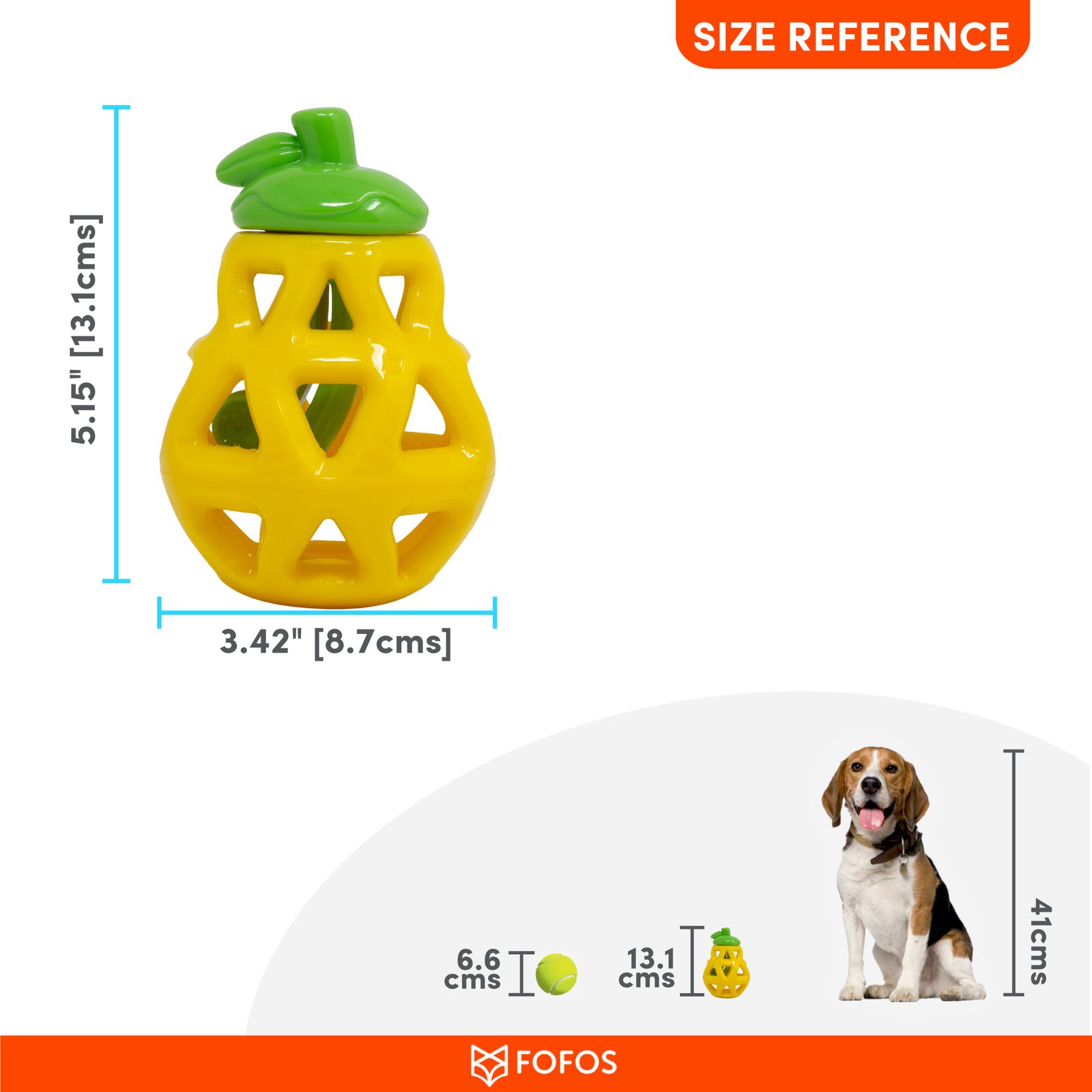 Fofos fruity bites pear is a set of treat-dispensing dog toys that allow you to stuff food and longer treats for longer playtime and smaller treats for smaller playtime inside. This toy set can be taken apart and used as two separate chew toys. It can also be put together while adding treats to it. This toy is made from 100% natural rubber. Interactive dog toys such as this allow your dog to chew and play while getting the right amount of exercise. This toy is ideal for small-large dogs (5-30kg) of various breeds such as dachshund, pom, spitz, etc . This toy is strong but not indestructible and is best suited for pet dogs that have moderate chewing, and fetch playing style. Not recommended for aggressive chewers.