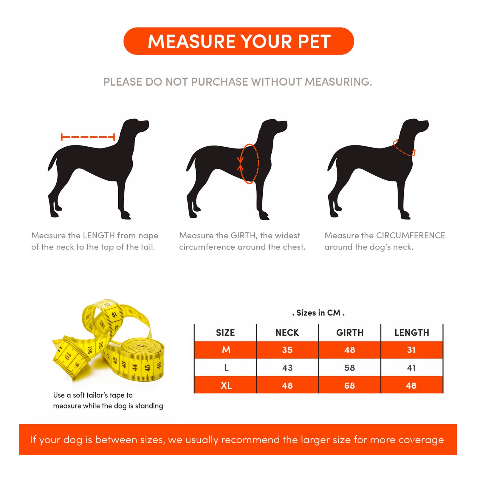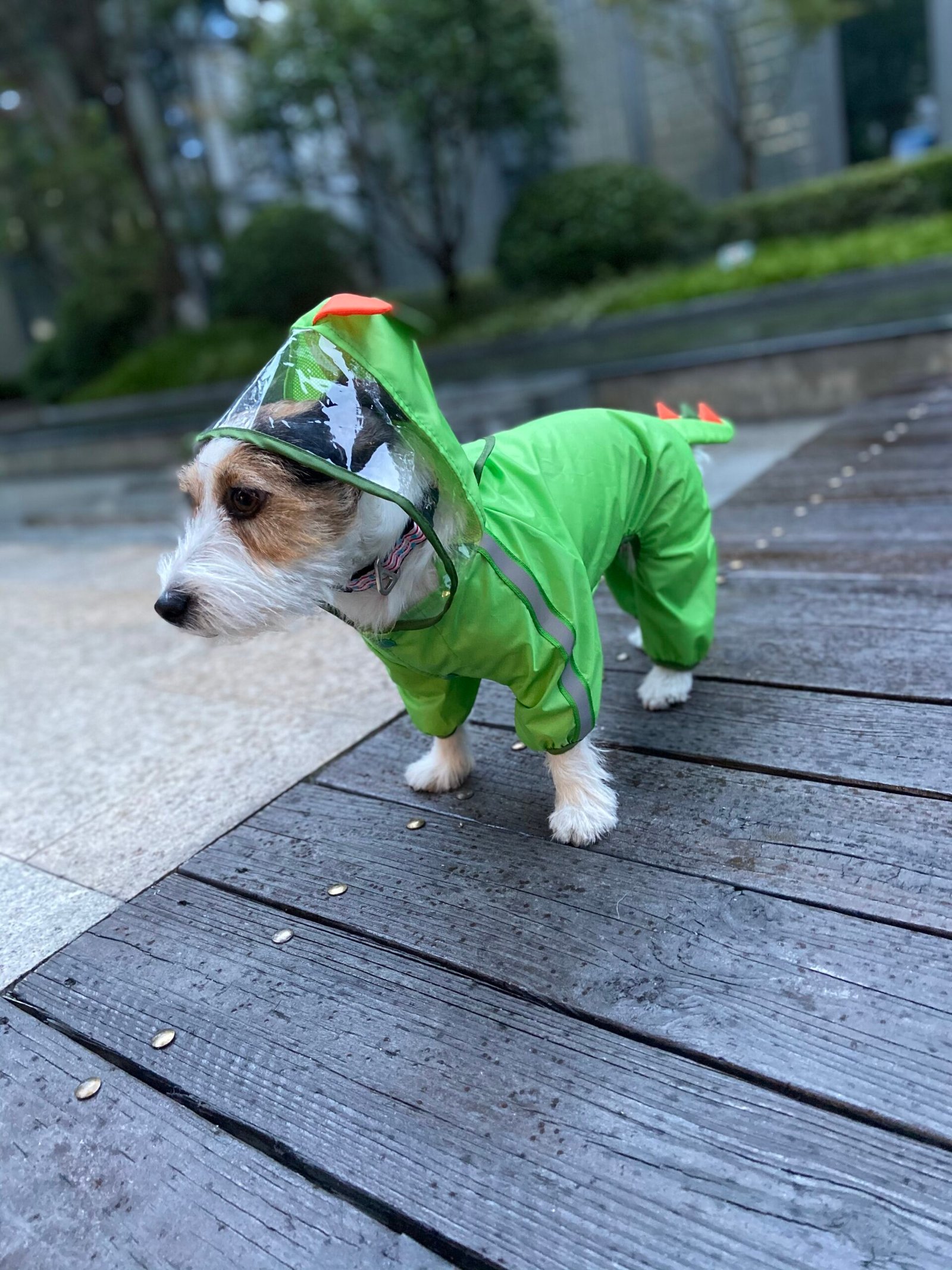 Made from lightweight, waterproof high-quality TPU material along with the mesh coating inside, this dog raincoat provides complete protection to your pet from the rain. A leash opening for easy access to take off or put on the leash with a cover that prevents water from entering. The reflective strip provides safety especially during walks or travel at night. The transparent hooded transparent design of this jacket provides complete head protection and visibility and the four-legged elastic cuffs coverings cover all 4 of your dog’s legs and prevent your dog from getting wet and splashed by the rain. The elastic fit & buttons help secure the raincoat & keep it in place and are easy to carry and convenient to travel with. To choose the right fit we recommend you measure your pet. This ensures that your pet is comfortable and has enough space while wearing the raincoat. Length measurements to be taken from base of hood to longest point on coat | S size fits pets 26cm in length| M size fits pets 32 cm in length | Large fits pets 42 cm in length | X-Large fits pets 48 cm in length. This raincoat is recommended for X large-sized dogs like labradors, golden retrievers, German shepherds, huskies etc