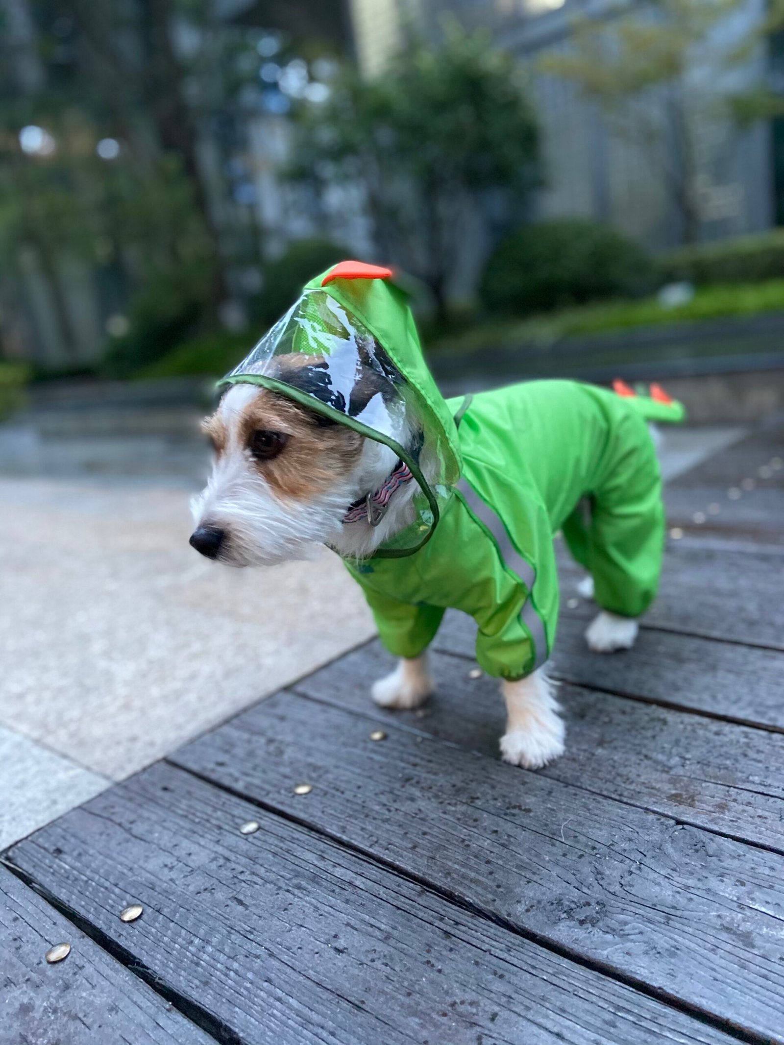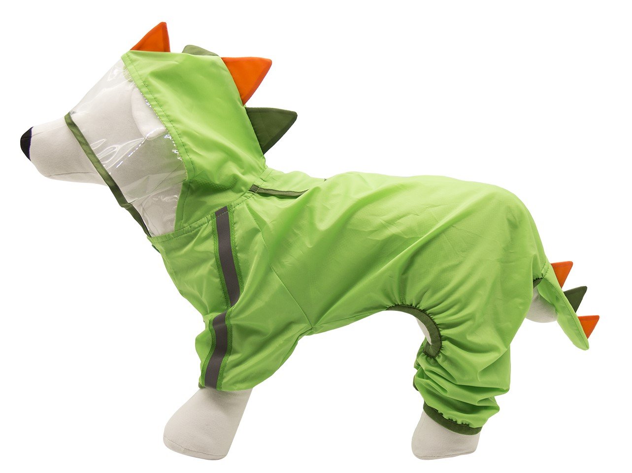 Made from lightweight, waterproof high-quality TPU material along with the mesh coating inside, this dog raincoat provides complete protection to your pet from the rain. A leash opening for easy access to take off or put on the leash with a cover that prevents water from entering. The reflective strip provides safety especially during walks or travel at night. The transparent hooded design of this jacket provides complete head protection and visibility and the four-legged elastic cuffs coverings cover all 4 of your dog’s legs and prevent your dog from getting wet and splashed by the rain. The elastic fit & buttons help secure the raincoat & keep it in place and are easy to carry and convenient to travel with. To choose the right fit we recommend you measure your pet. This ensures that your pet is comfortable and has enough space while wearing the raincoat. Length measurements to be taken from base of hood to longest point on coat | S size fits pets 26cm in length| M size fits pets 32 cm in length | Large fits pets 42 cm in length | X-Large fits pets 48 cm in length. This raincoat is recommended for small-sized dogs like Pugs, Pomeranians, shih-tzu, spitz etc