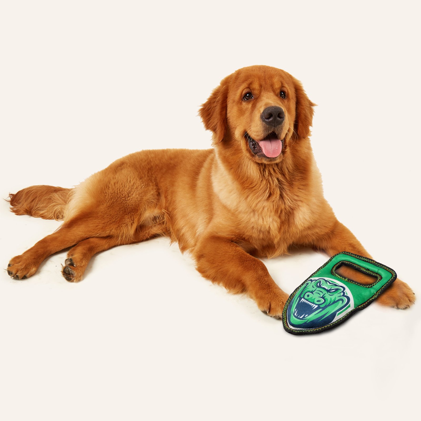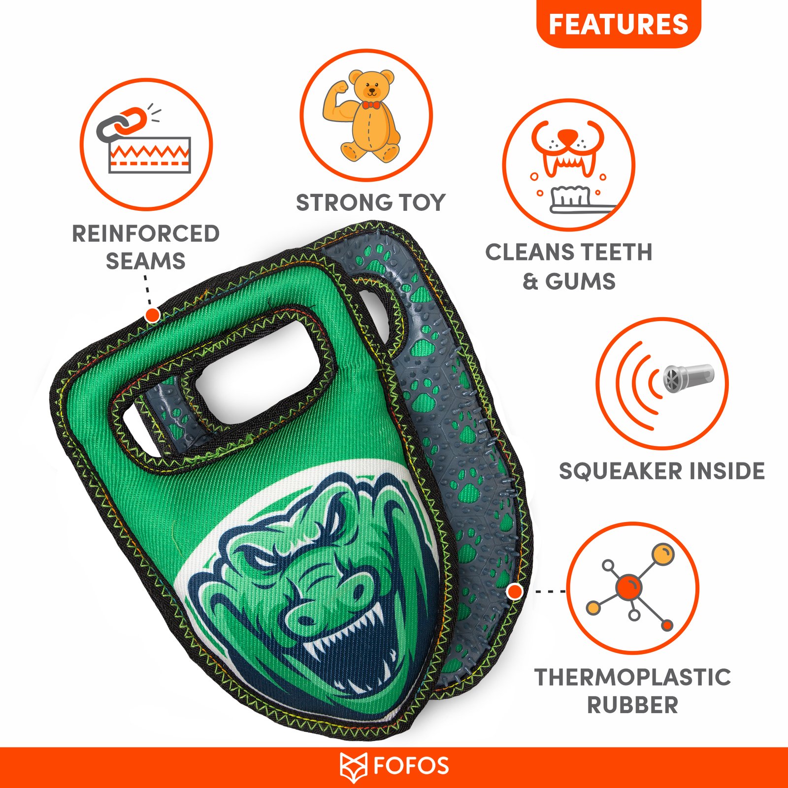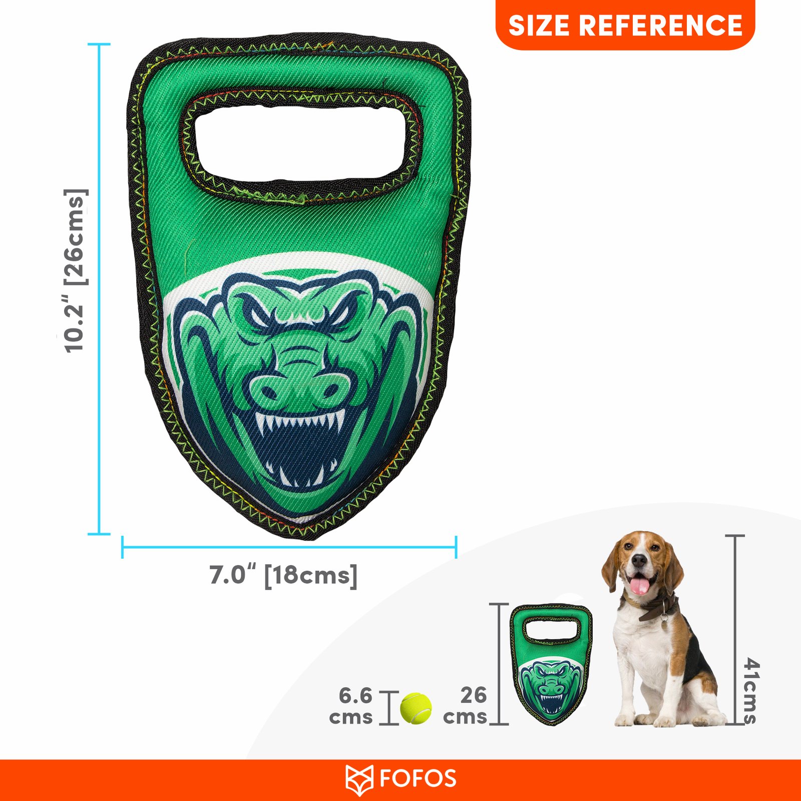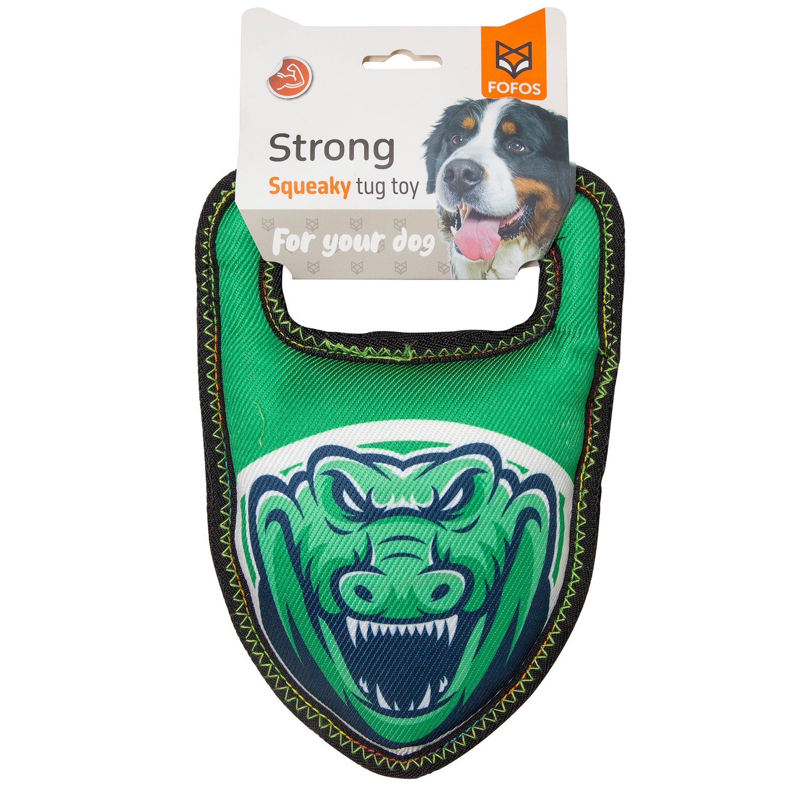 Fofos strong crocodile is a stuffed plush tug toy with reinforced seams to increase resistance.This dog toy has a squeaker inside that makes a squeaky noise every time your pet interacts with it and also helps clean the teeth and gums. It is made from a combination of strong fabric + TPR. Interactive dog toys such as this allow your dog to chew, fetch tug, and bite on it while getting the right amount of exercise. This soft toy is ideal for medium-large dogs (10-30kg) of various breeds such as dachshund, pom, labrador, st. Bernard etc . This toy is strong but not indestructible and is best suited for pet dogs that have aggressive chewing, fetching and tug playing styles. Not recommended for aggressive chewers.