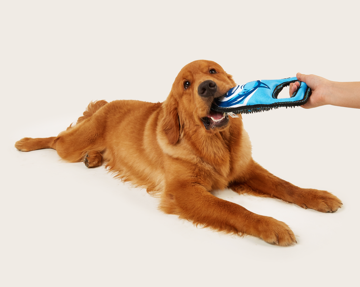 Fofos strong leopard is a stuffed plush tug toy with reinforced seams to increase resistance.This dog toy has a squeaker inside that makes a squeaky noise every time your pet interacts with it and also helps clean the teeth and gums. It is made from a combination of strong fabric + TPR. Interactive dog toys such as this allow your dog to chew, fetch tug, and bite on it while getting the right amount of exercise. This soft toy is ideal for medium-large dogs (10-30kg) of various breeds such as dachshund, pom, labrador, st. Bernard etc . This toy is strong but not indestructible and is best suited for pet dogs that have aggressive chewing, fetching and tug playing styles. Not recommended for aggressive chewers.