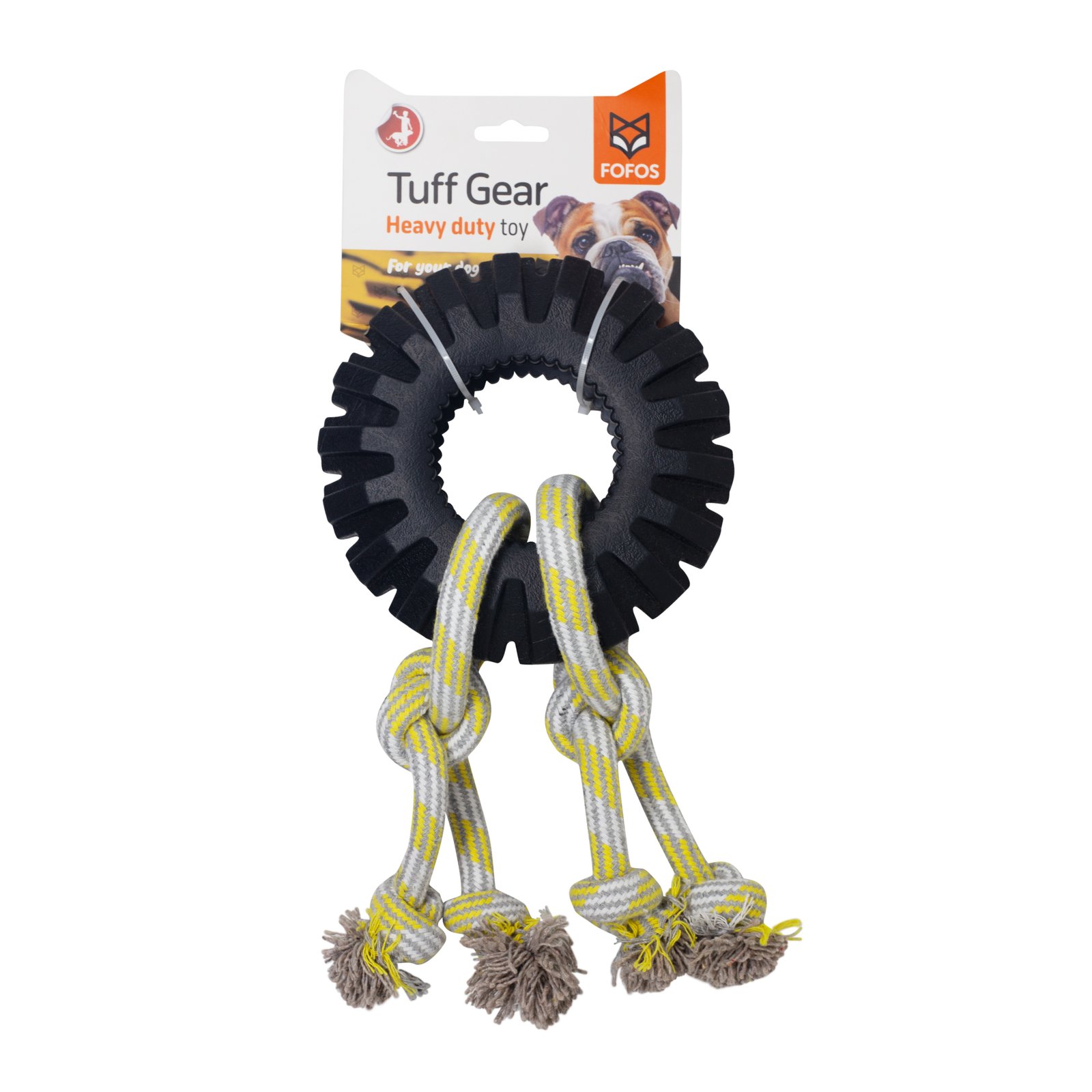 Fofos tyre large rope toy is a durable super chewer dog toy that is long-lasting and is best suited for most aggressive chewers. The tough rubber tyre shape is strategically designed for fun games of fetch and tug and also promotes independent play in dogs. This chew toy is treat-dispensing and can hold treats, peanut butter, dahi etc and helps keep your dog engaged. It is made from high-density TPR material and a durable cotton rope. Interactive dog toys such as this allow your puppy to chew, fetch tug, and bite on it while getting the right amount of exercise. This toy is ideal for large-X-Large dogs (20-40kg) of various breeds such as st bernards, labradors, german shepherds, rottweilers, mastiffs etc. This super chew toy is strong and durable but not indestructible and is best suited for pet dogs that have aggressive chewing, fetching and tug playing styles. Recommended for most aggressive chewers.