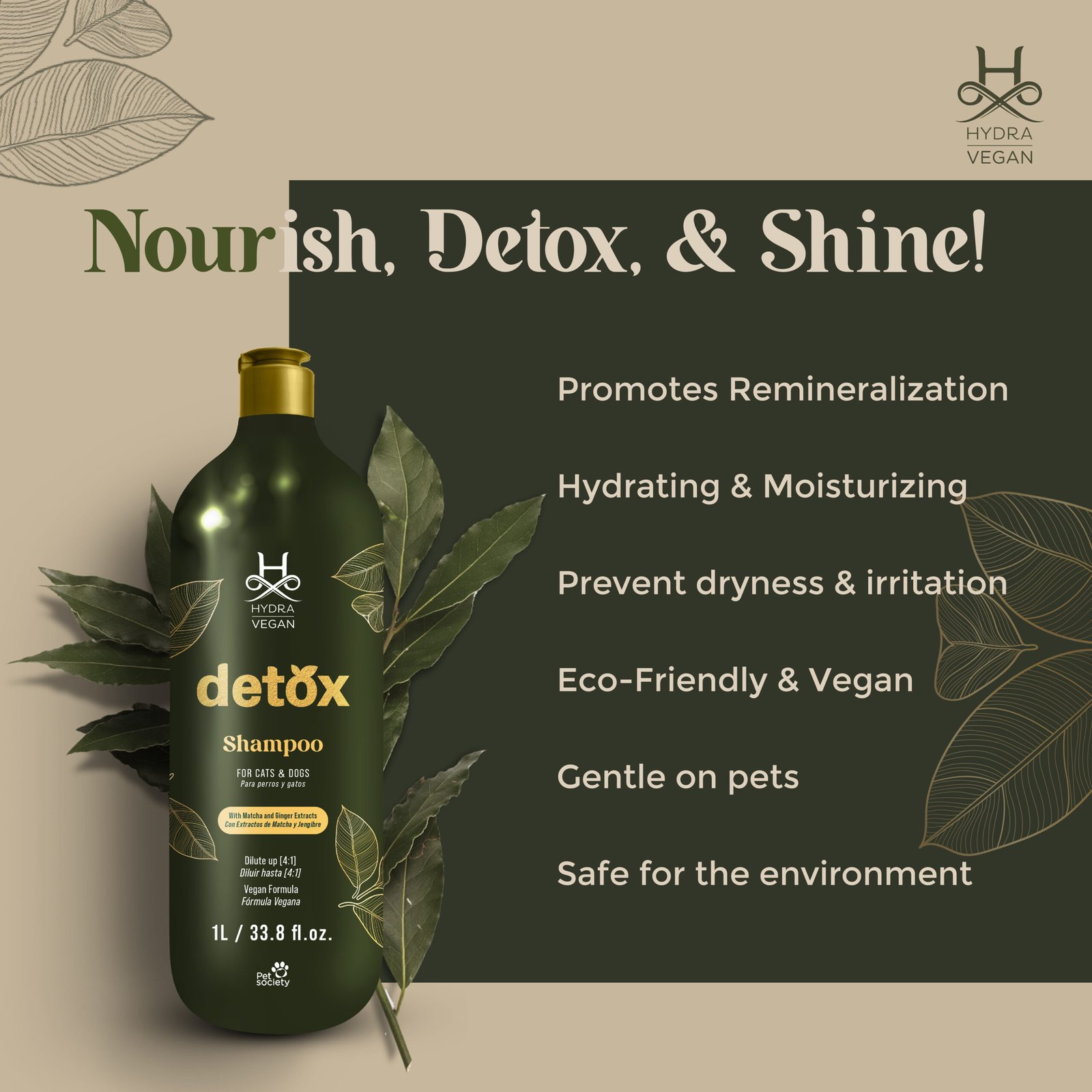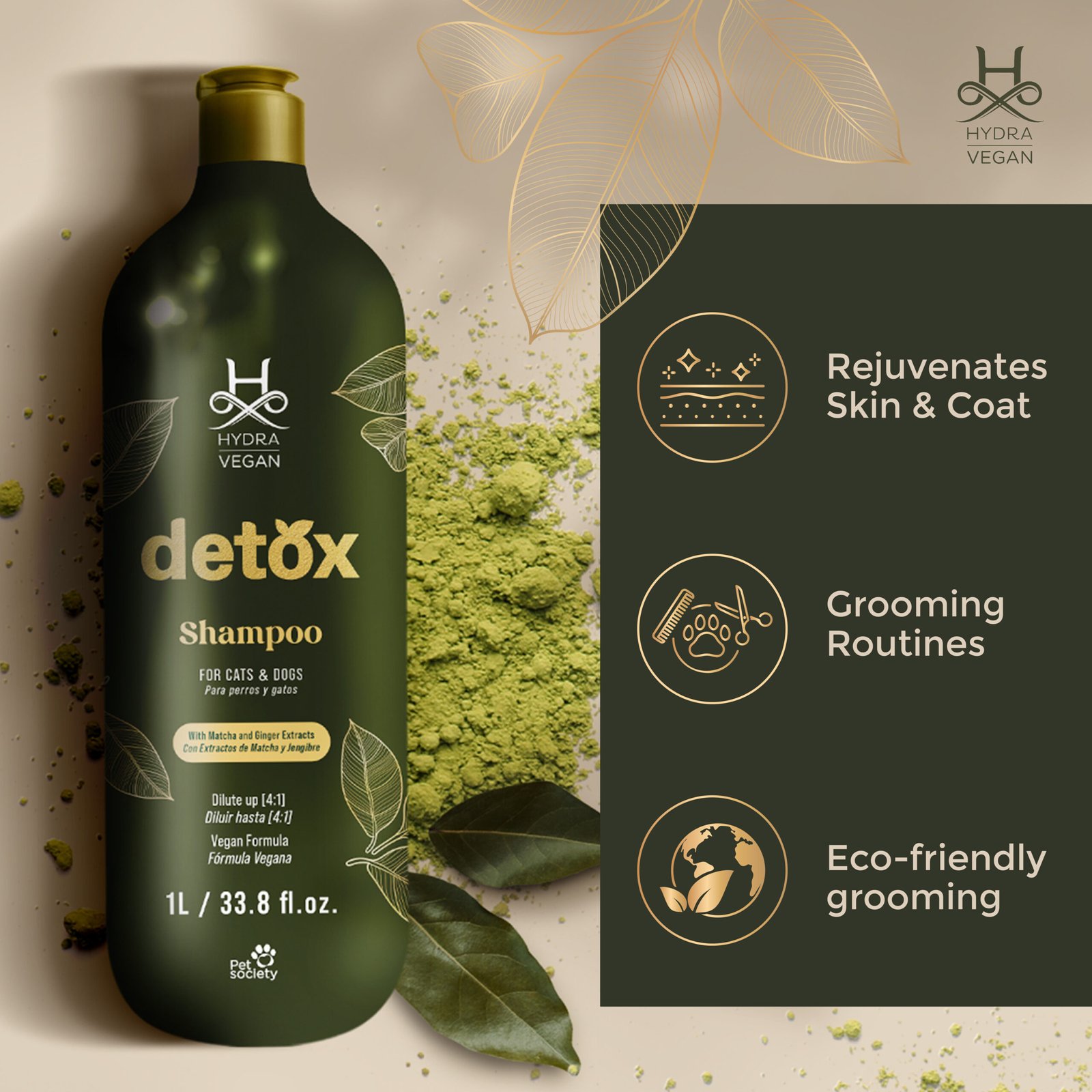 | Plant-powered detox shampoo designed to gently cleanse and revitalize coat and skin, free from sulfates and parabens. |