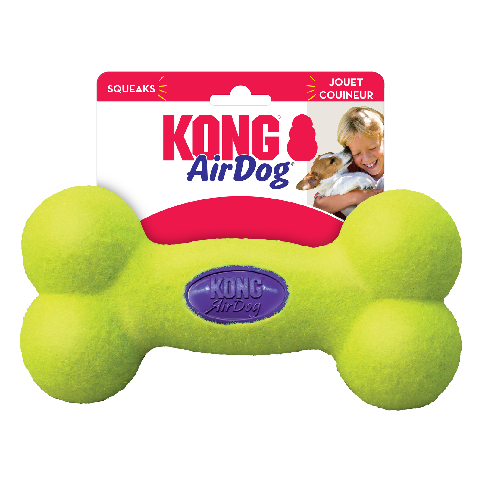 KONG AirDog® Squeaker combines two classic dog toys -the tennis ball and the squeaker – to create the perfect fetch toy. The non-abrasive, high-quality material will not wear down dogs’ teeth. Find your dog’s favorite AirDog® shape and let the games begin.